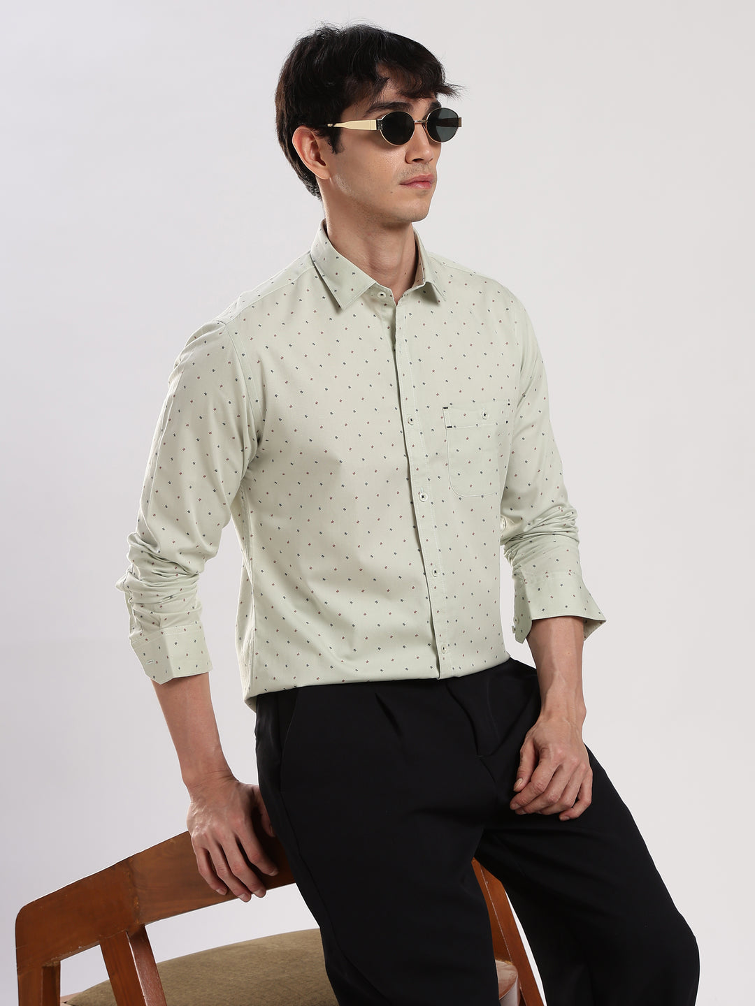 Green Cotton Lycra Regular Fit Embrioded Round Neck T-Shirt