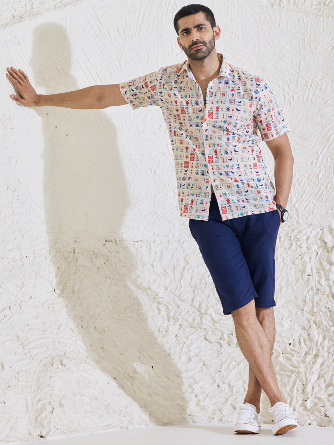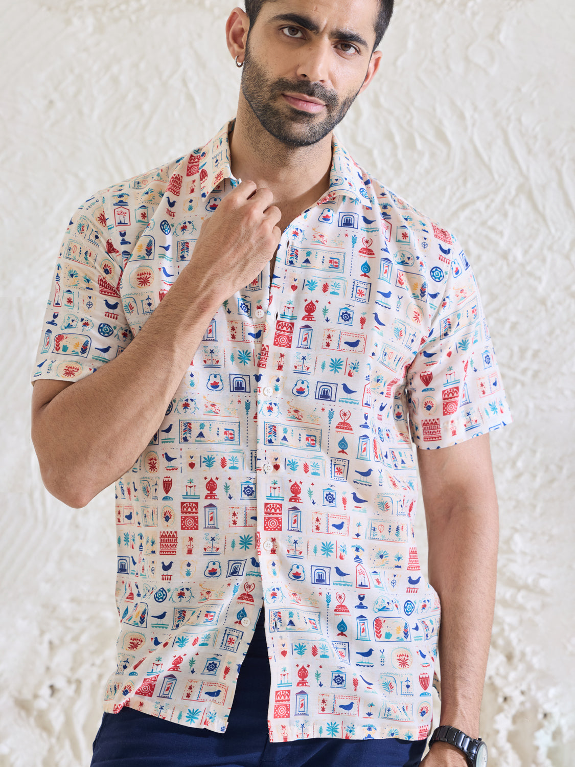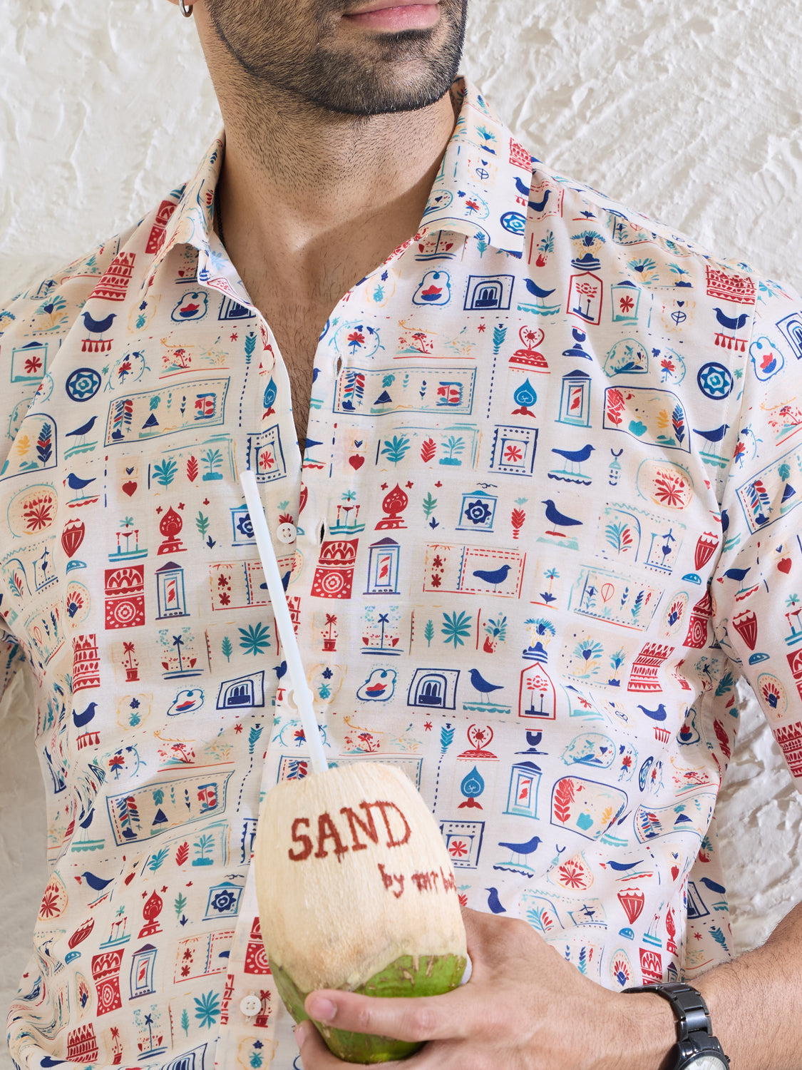 Introducing our Beige Colored Shirt, a canvas of creativity adorned with delightful, colorful prints. Designed for those seeking individuality, its relaxed fit and half sleeves offer comfort without compromising style. Crafted from luxurious satin muslin, each stitch is infused with love, ensuring an immersive wearing experience. Perfect for smart casual outings, this shirt is a testament to refined relaxation and whimsical charm.