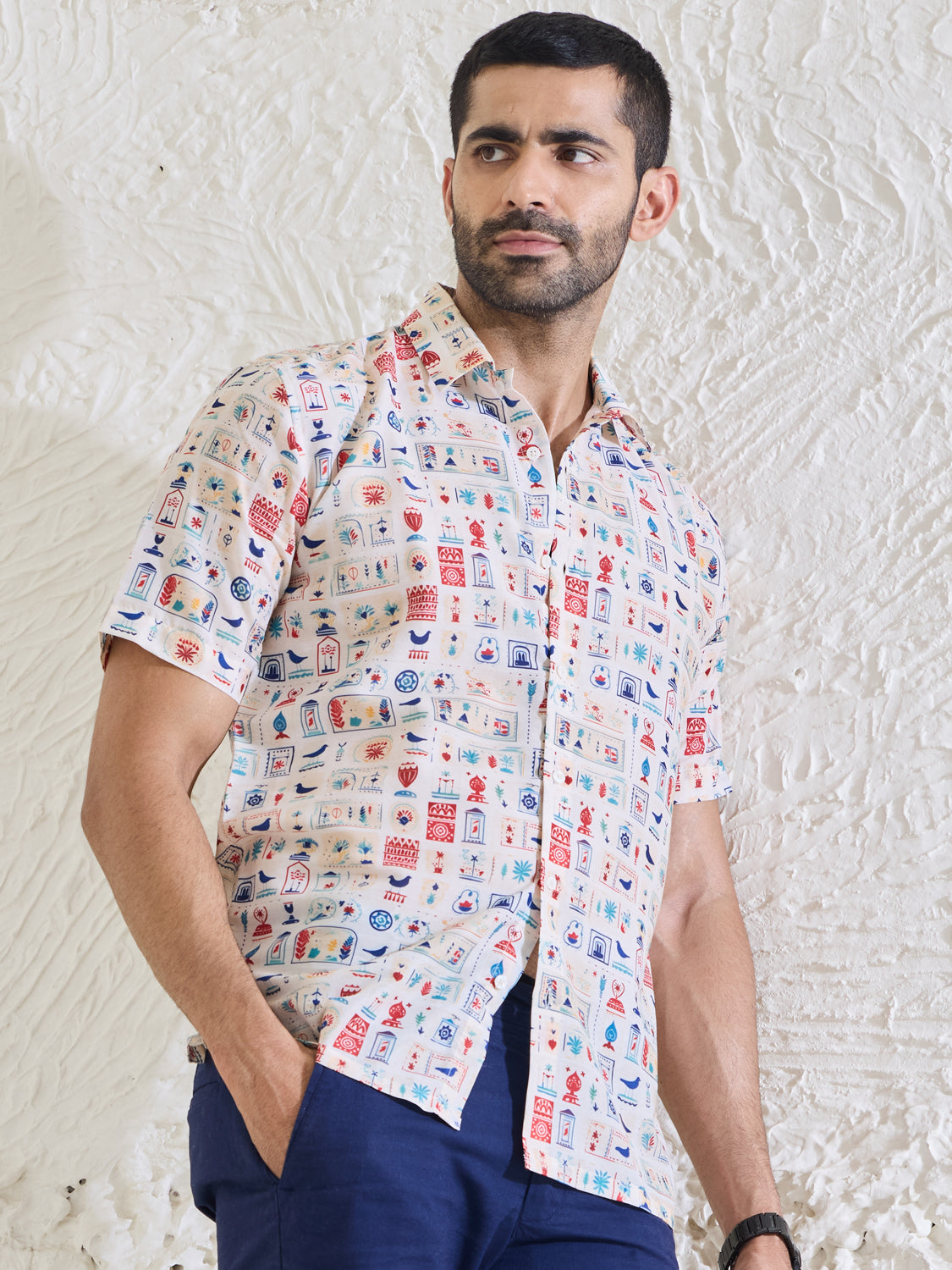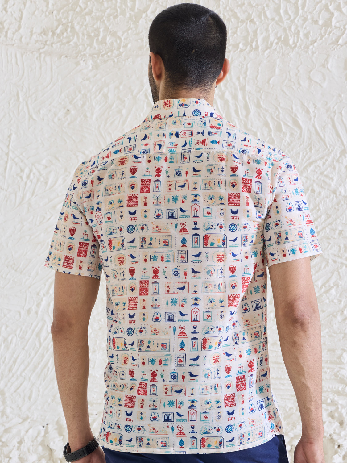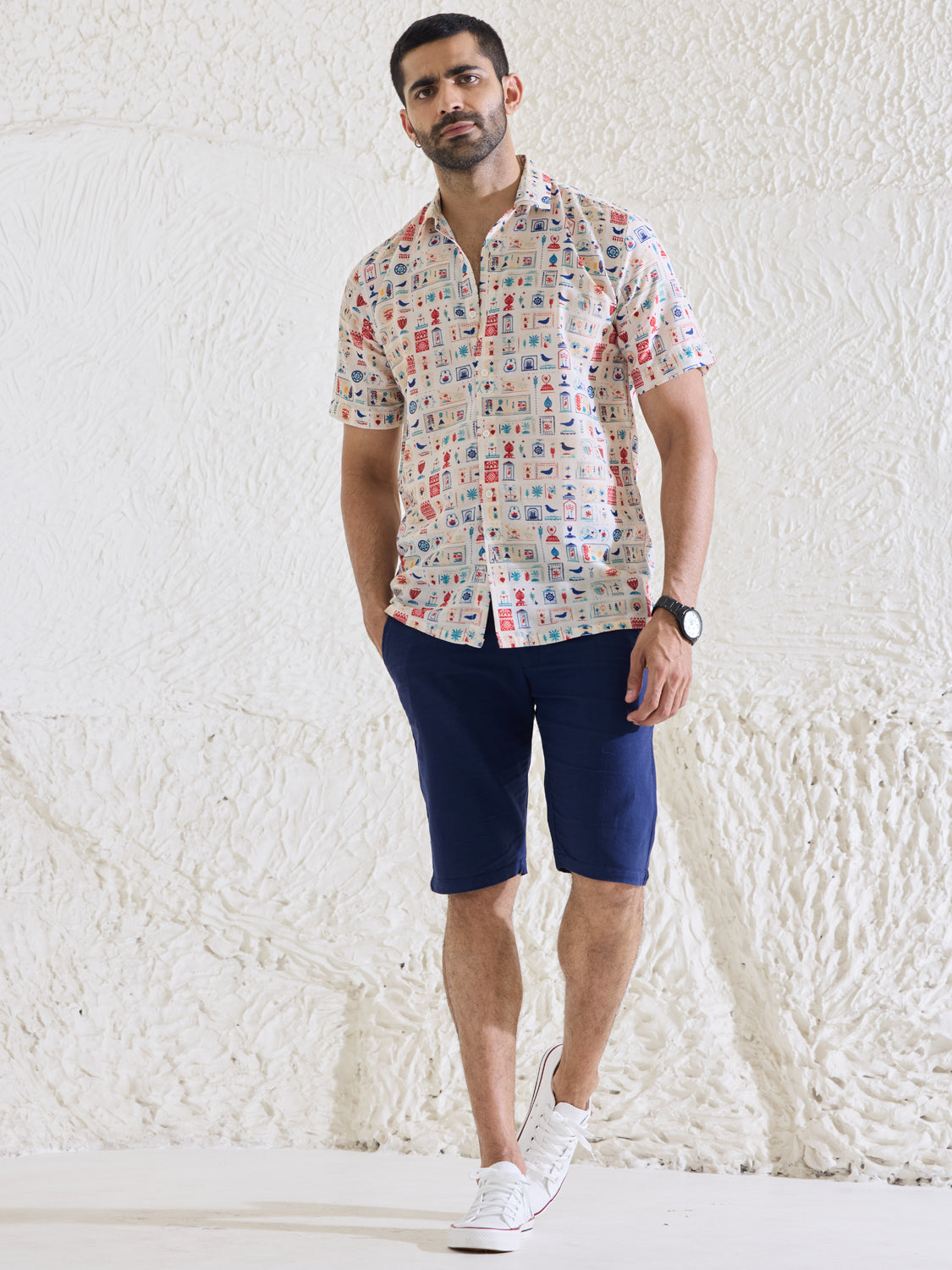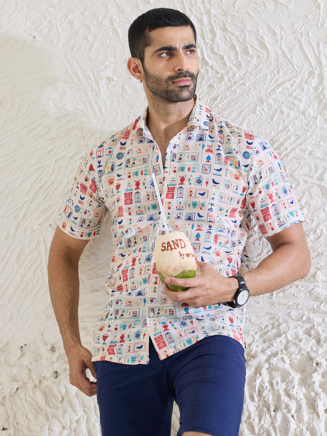Introducing our Beige Colored Shirt, a canvas of creativity adorned with delightful, colorful prints. Designed for those seeking individuality, its relaxed fit and half sleeves offer comfort without compromising style. Crafted from luxurious satin muslin, each stitch is infused with love, ensuring an immersive wearing experience. Perfect for smart casual outings, this shirt is a testament to refined relaxation and whimsical charm.