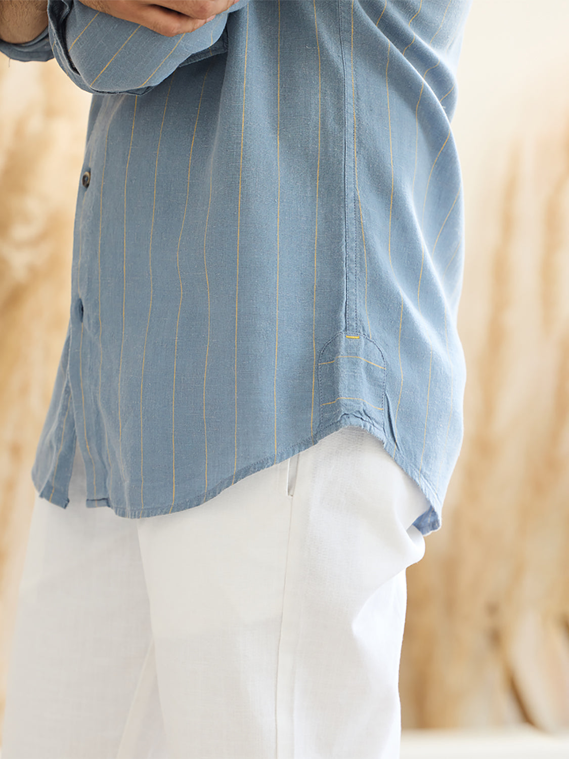 Catchy Customer Line: "Striped Elegance, Collared Confidence: Make a Splash in Our Band Collar Shirt!"