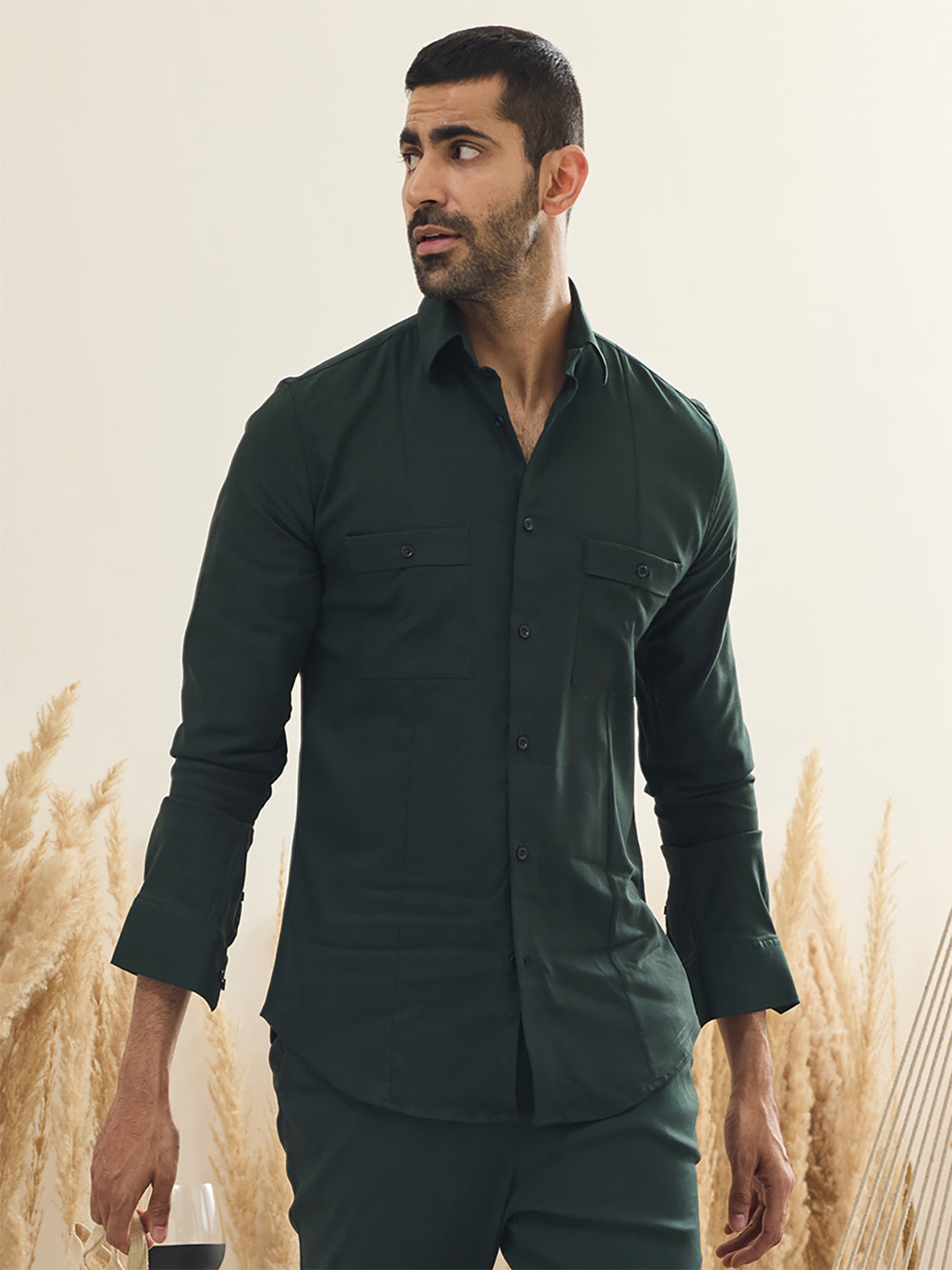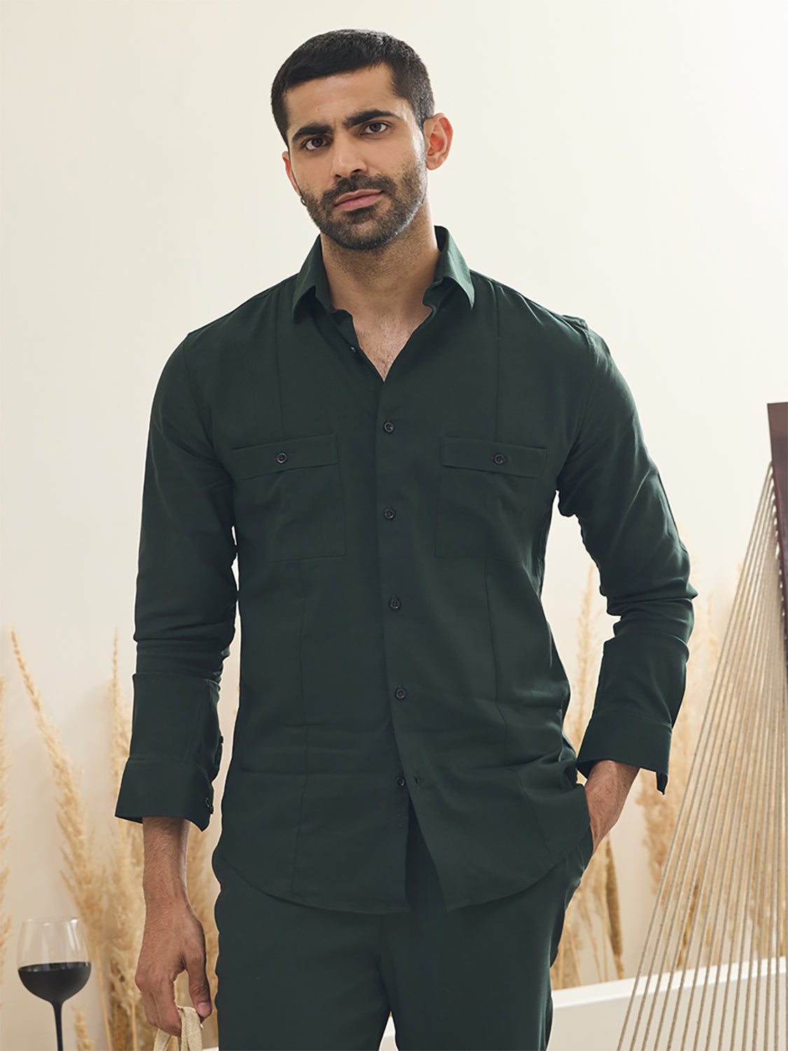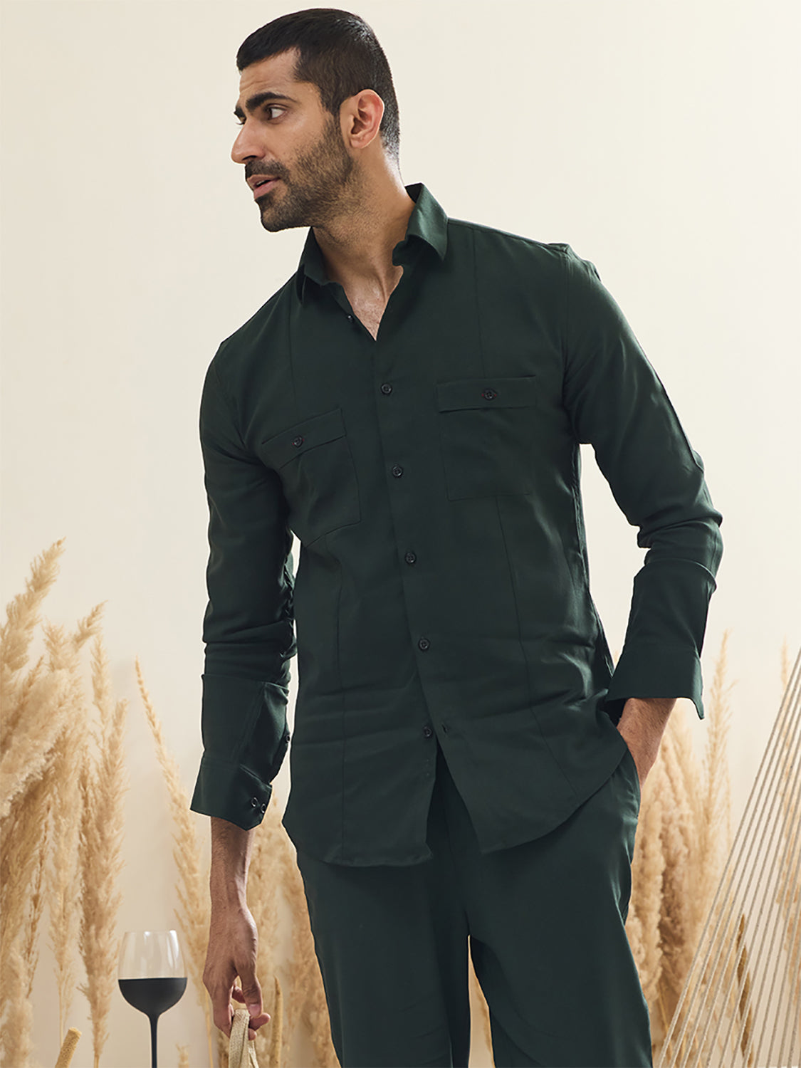 Introducing our Green Solid Tongue Tied Shirt, a testament to effortless sophistication. Crafted from a luxurious blend of rayon, polyester, and lycra, this shirt offers a relaxed fit that embodies comfort and style in equal measure. The vibrant green hue exudes a sense of vitality and freshness, making it a statement piece for any occasion. With its smart casual appeal, this shirt is designed to elevate your look with ease and refinement.