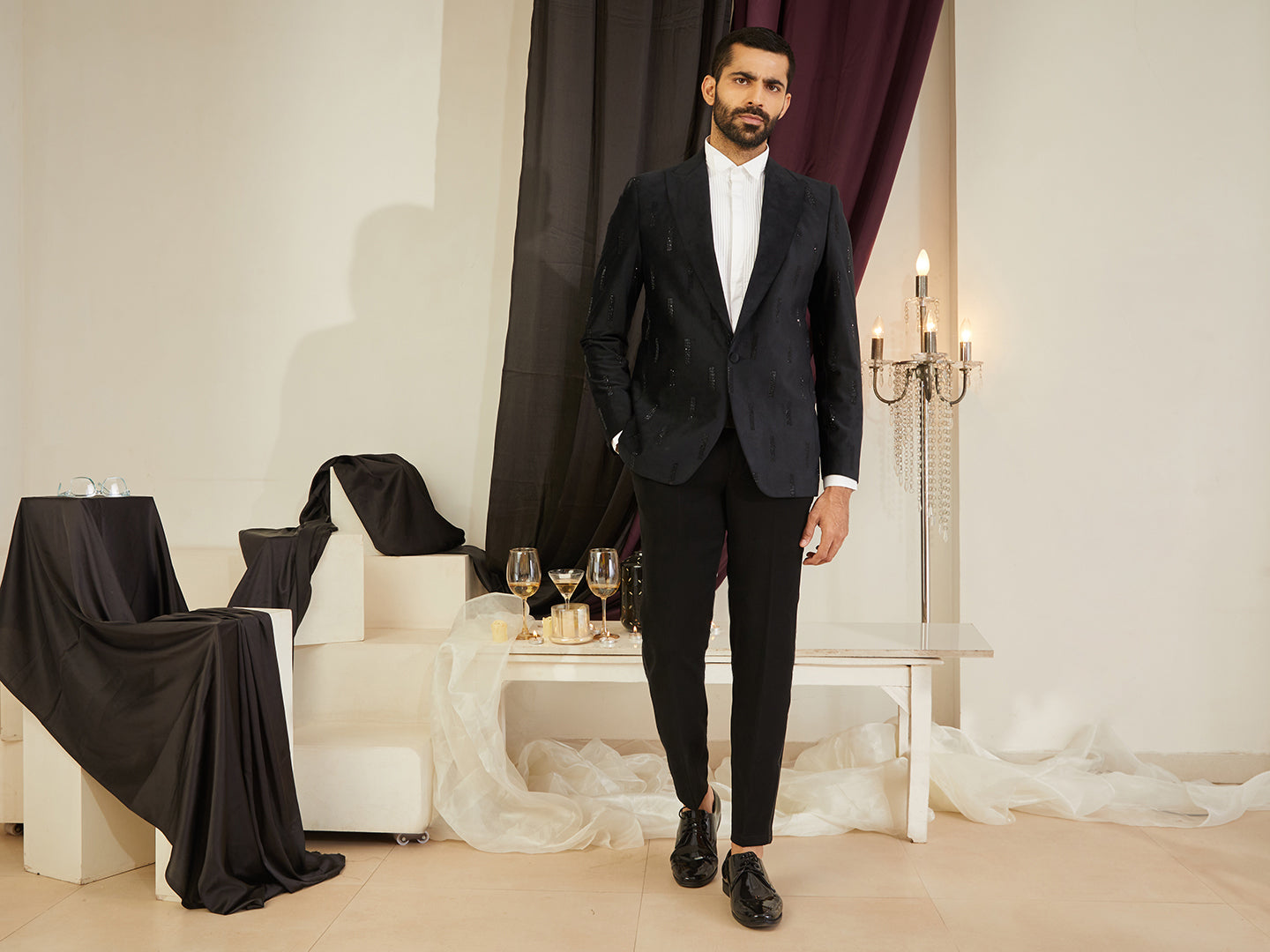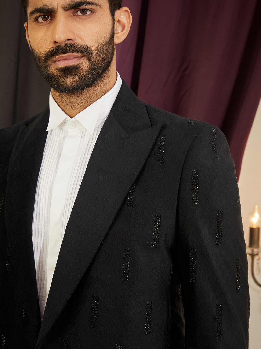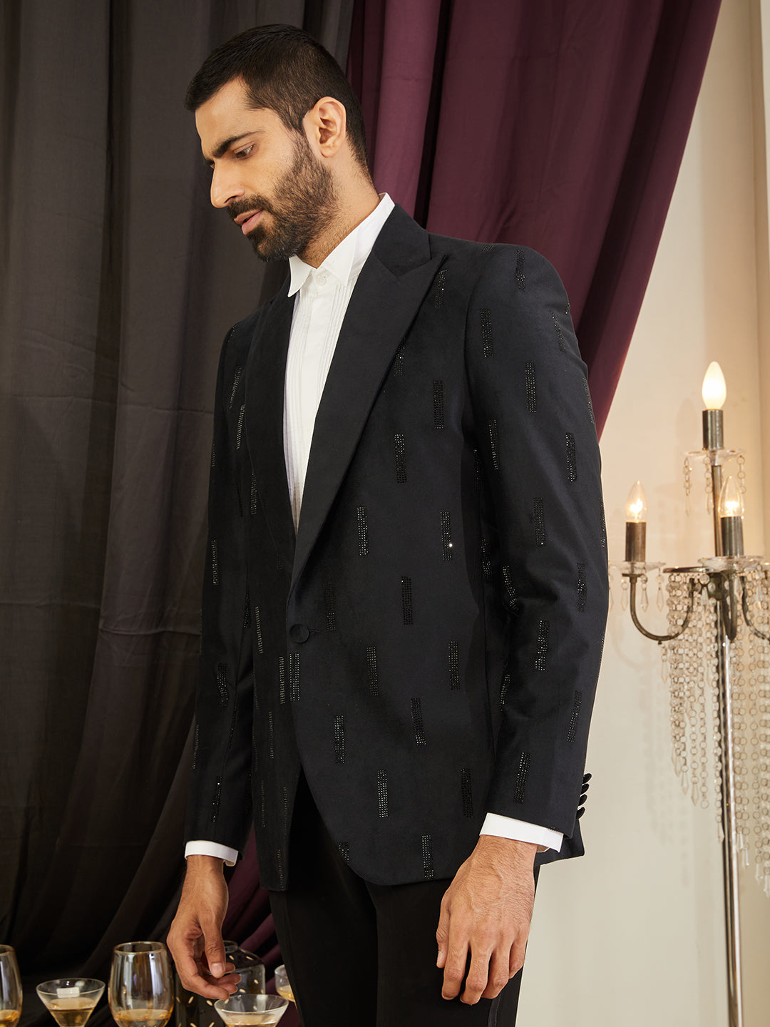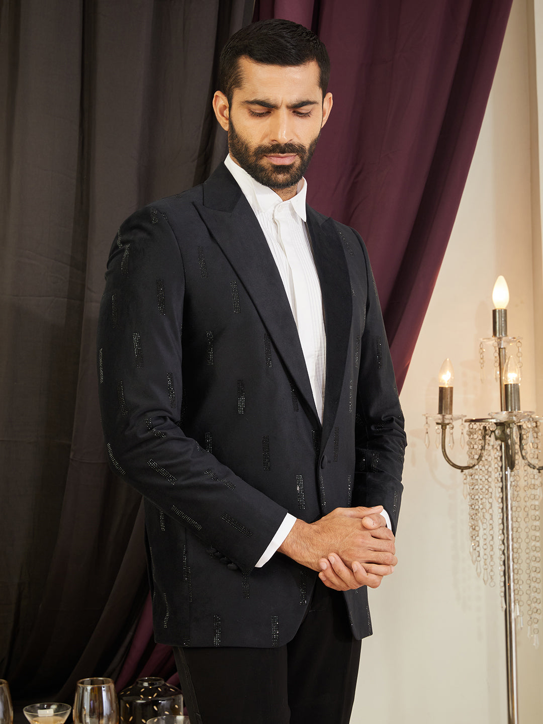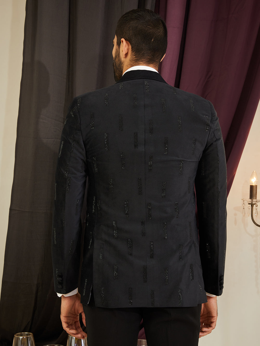 The deep, rich velvet offers a luxe feel while the rhinestones bring a modern edge, making this blazer perfect for dancing the night away. Crafted in plush velvet with a sleek silhouette, it pairs beautifully with dresses, skirts, or tailored pants for versatile formal, party wear, and evening wear.