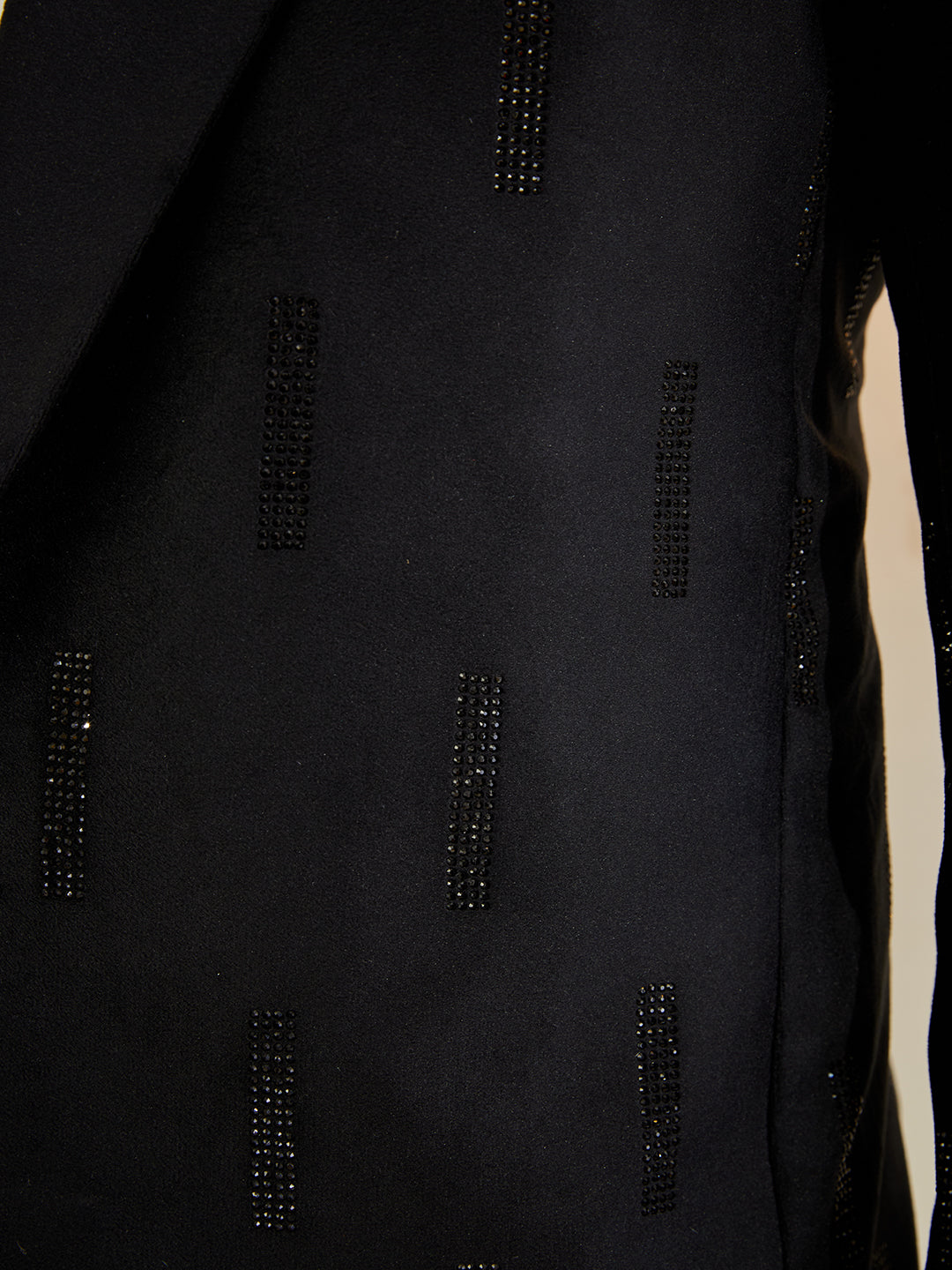 Let the rhinestones make you shine with the Glitter Reins Blazer—a luxurious velvet rhinestone blazer designed for stand-out party and wedding looks. This glamorous piece blends bling with comfort, so you can sparkle all night without sacrificing ease.