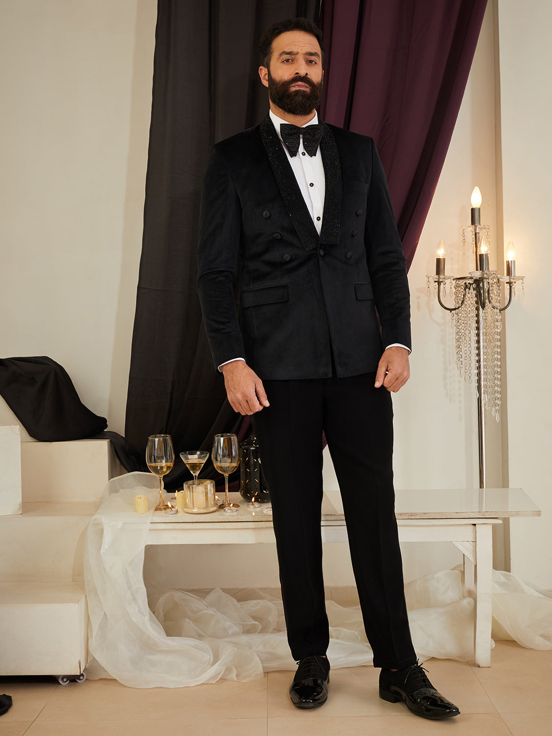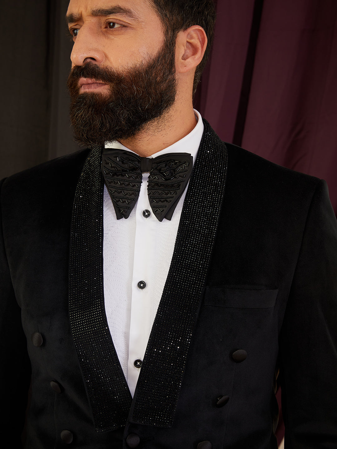 • Lux velvet fabric with rhinestone accents adds instant glamour that shines in photos and crowds.