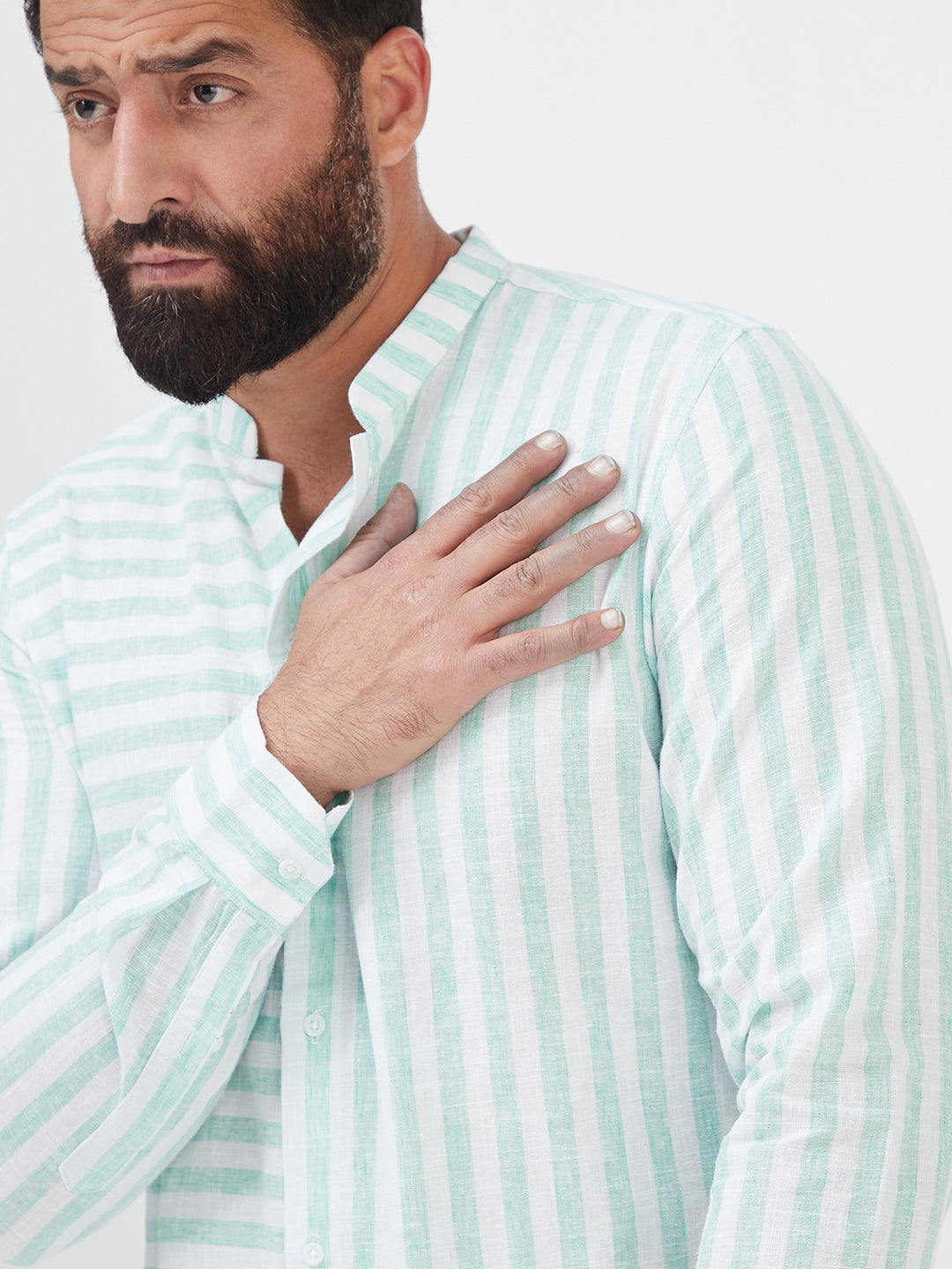 A mandarin collar tunic is a menswear classic inspired by vintage style. This grandad style will help add that differentiation to your collection. Wear them all buttoned up or leave them partially unbuttoned for a nonchalant, devil-may-care look.