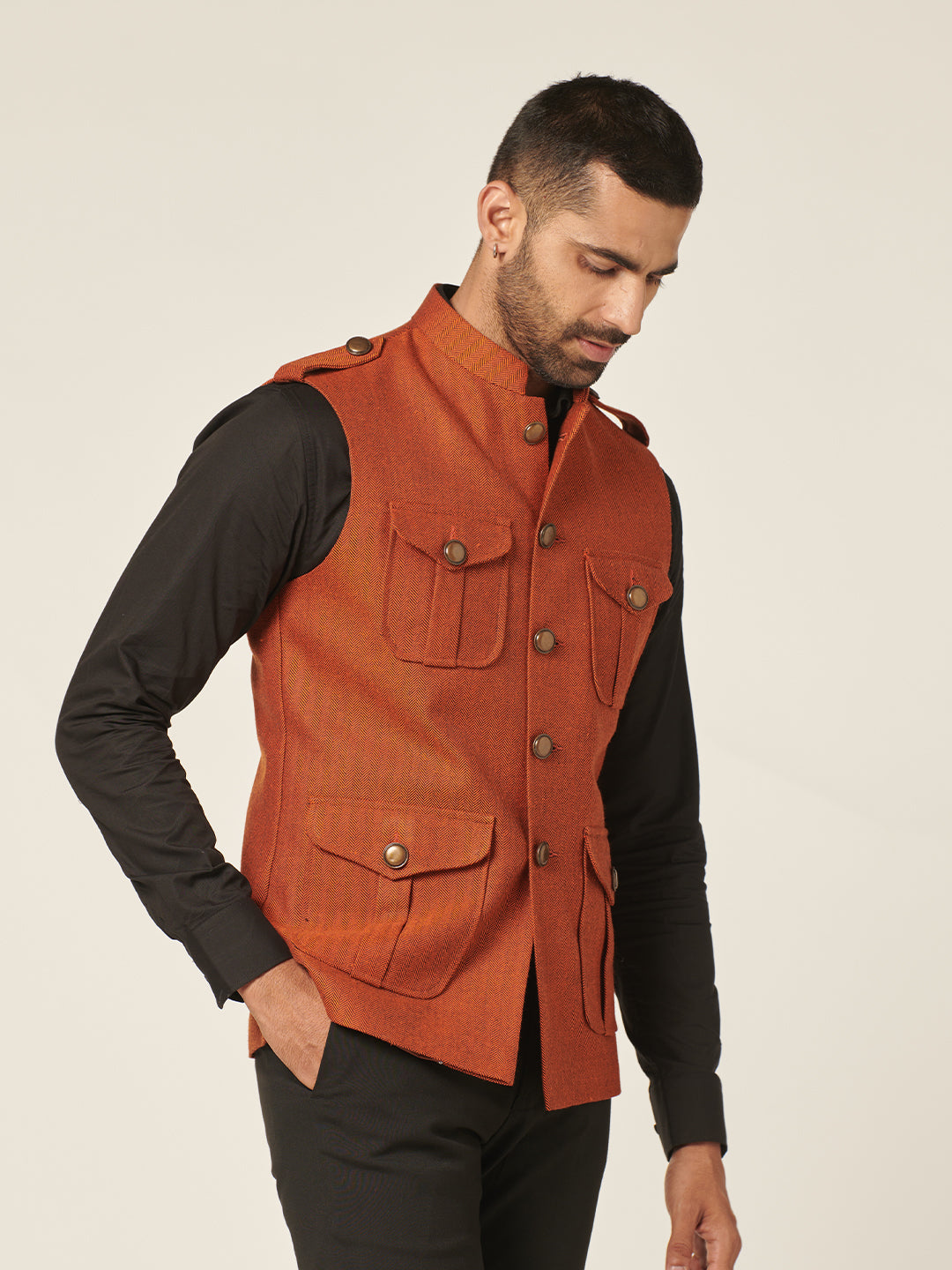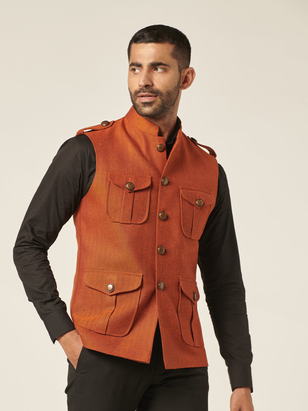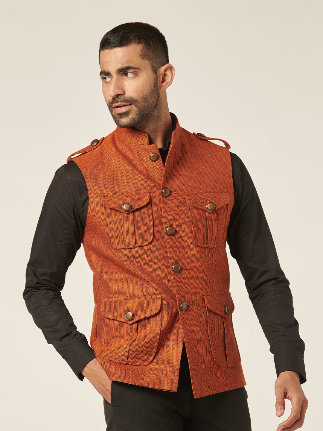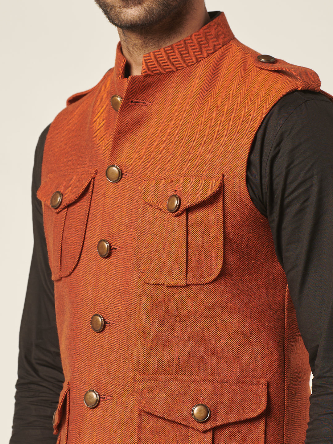 Nehru jackets are the new blazers. These sleeveless jackets are the ultimate all weather layering option to keep your casual style in place. The sharp fit will ensure a crisp consequence each time. Don't hesitate to pair this pair with t-shirts, tunics or shirts.