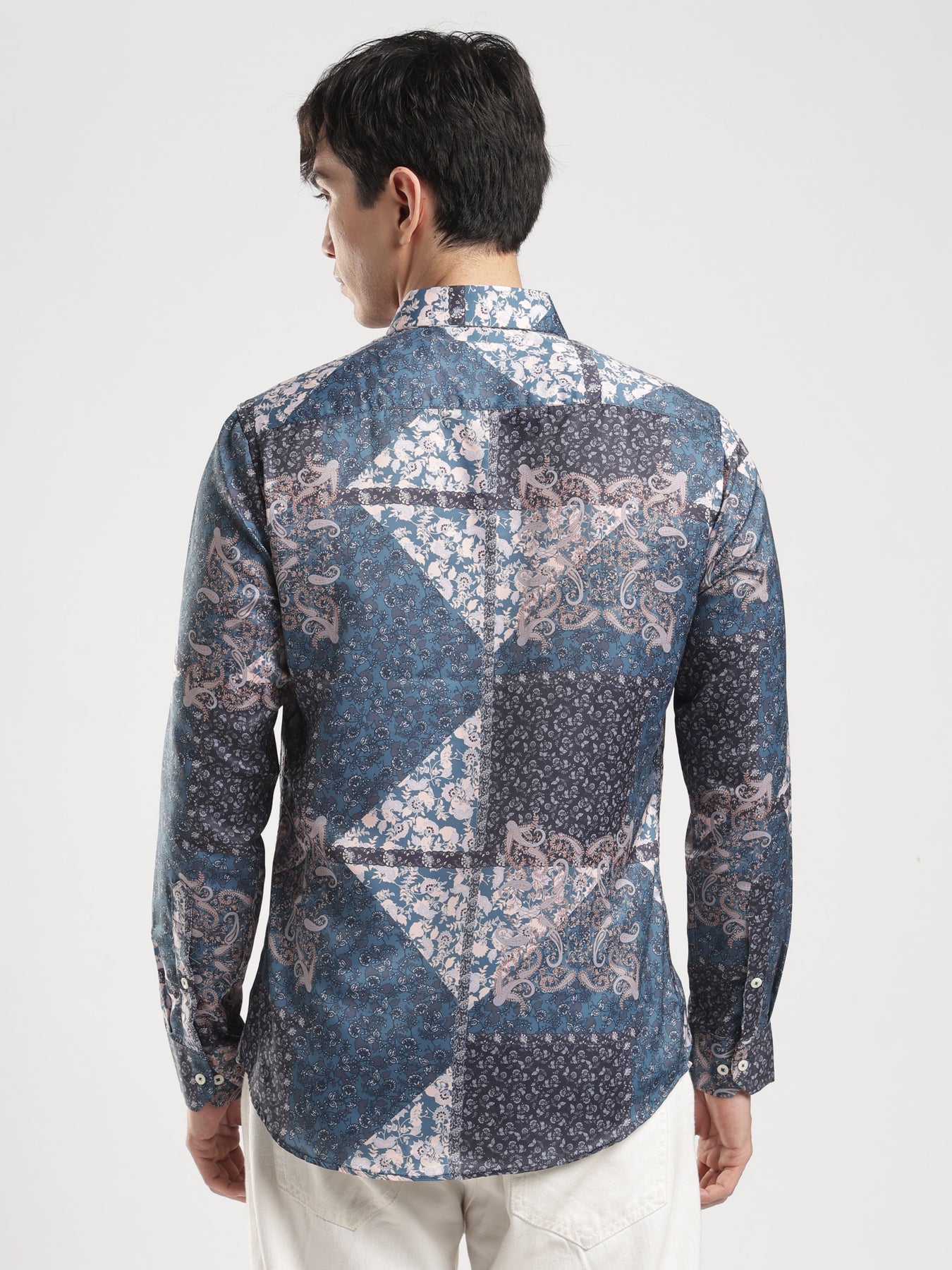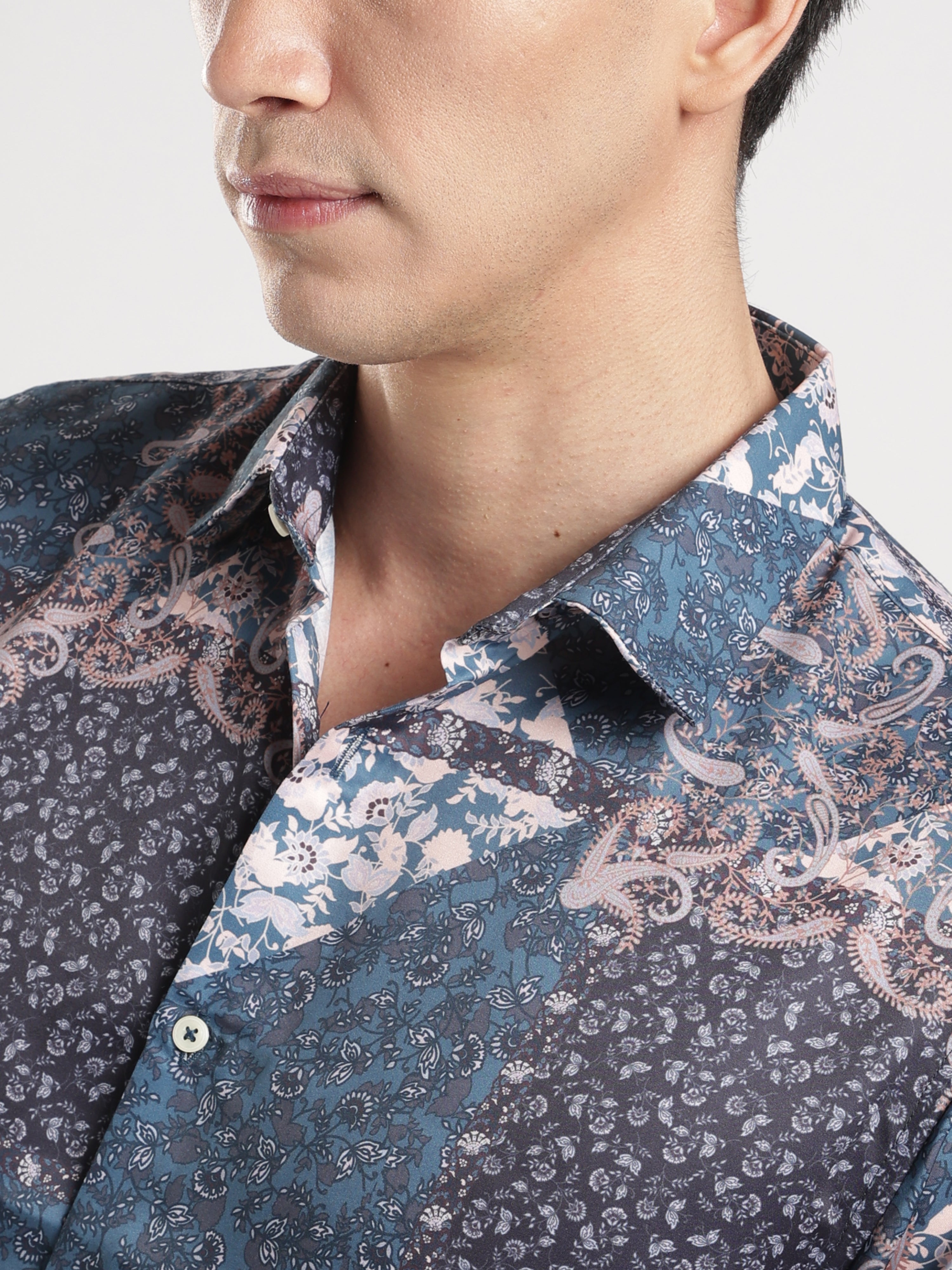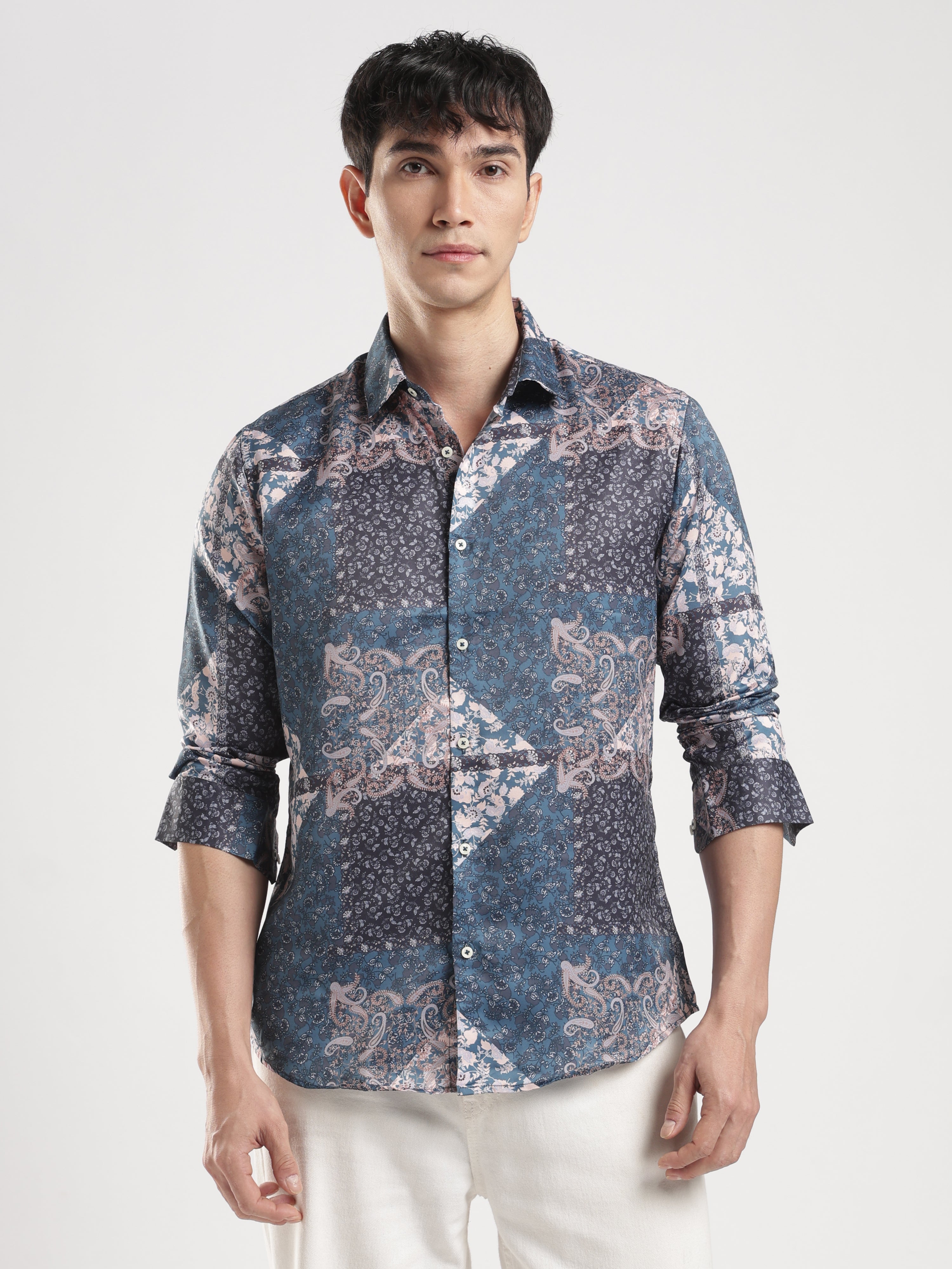 Catchy Customer Line: "Style That Moves, Fashion That Grooves: Feel the Beat with The Electric Boogie Shirt!" Elevate your style game with "The Electric Boogie Shirt," your ultimate smart casual companion. Crafted from luxurious Satin Muslin fabric, this Blue Color Printed Full Sleeve Shirt offers a tailored slim fit and a sophisticated spread collar. With its dynamic print and impeccable craftsmanship, it's the perfect choice for making a lasting impression. Turn heads and light up the night with "The Electric Boogie Shirt."
