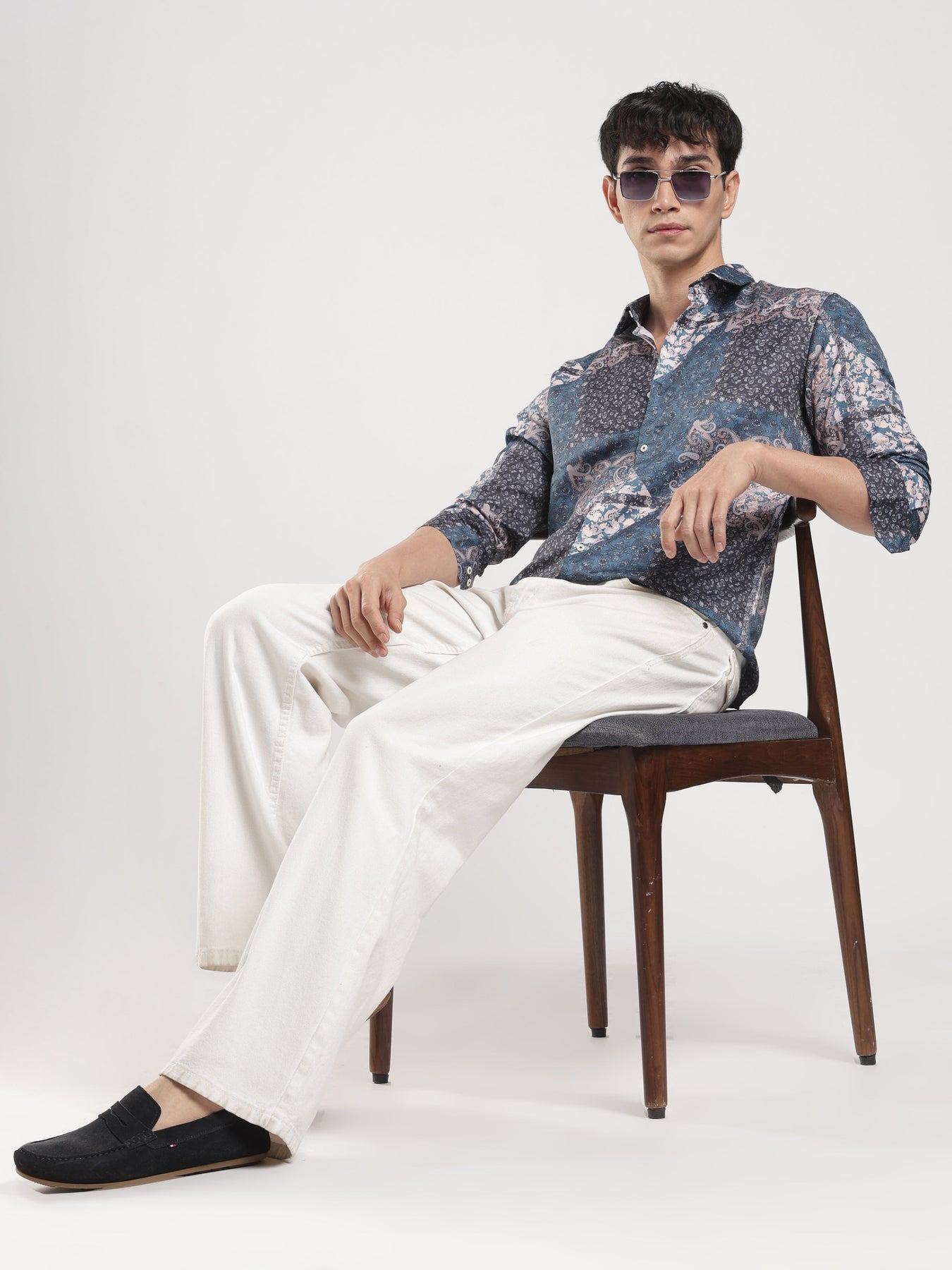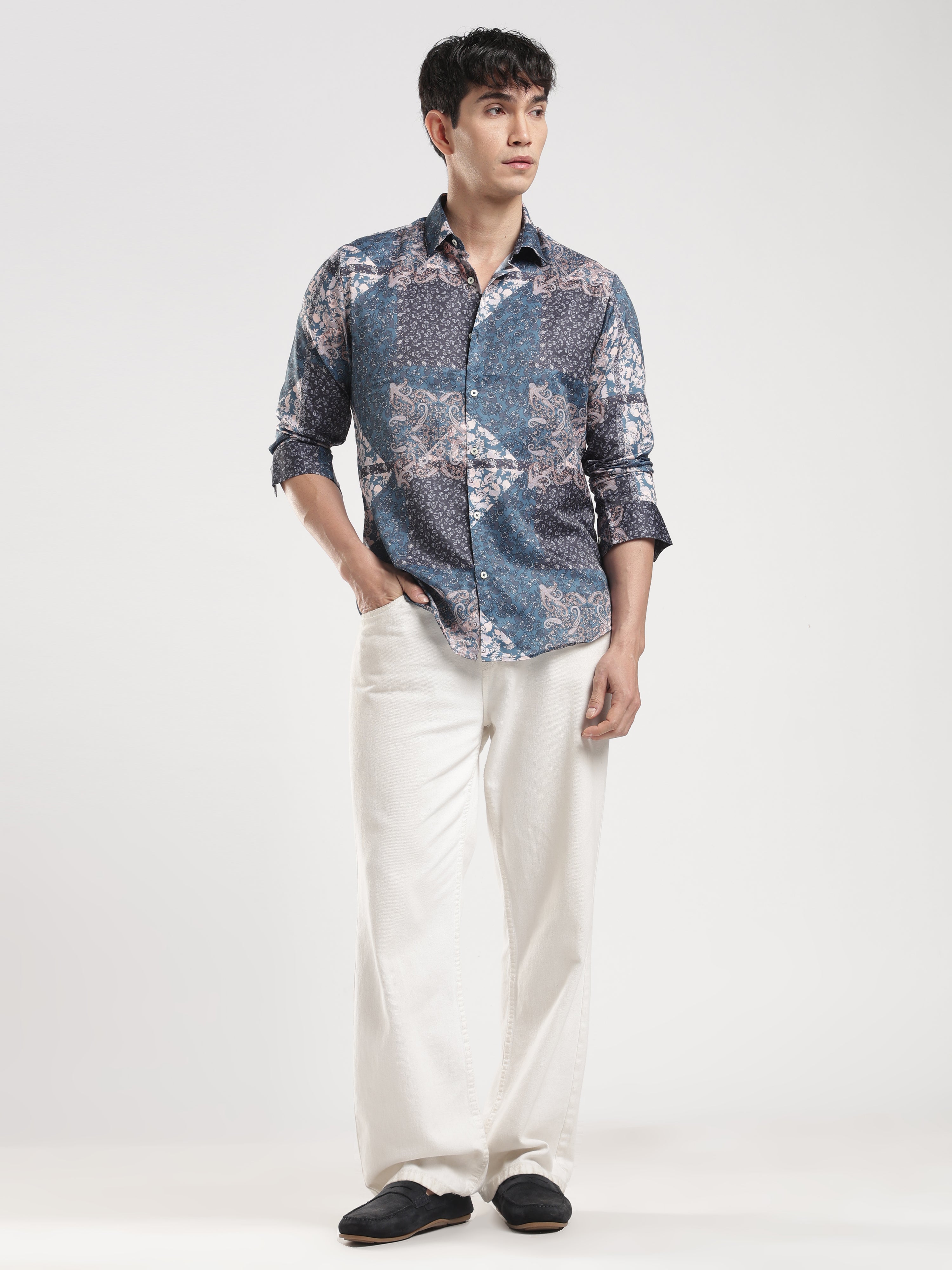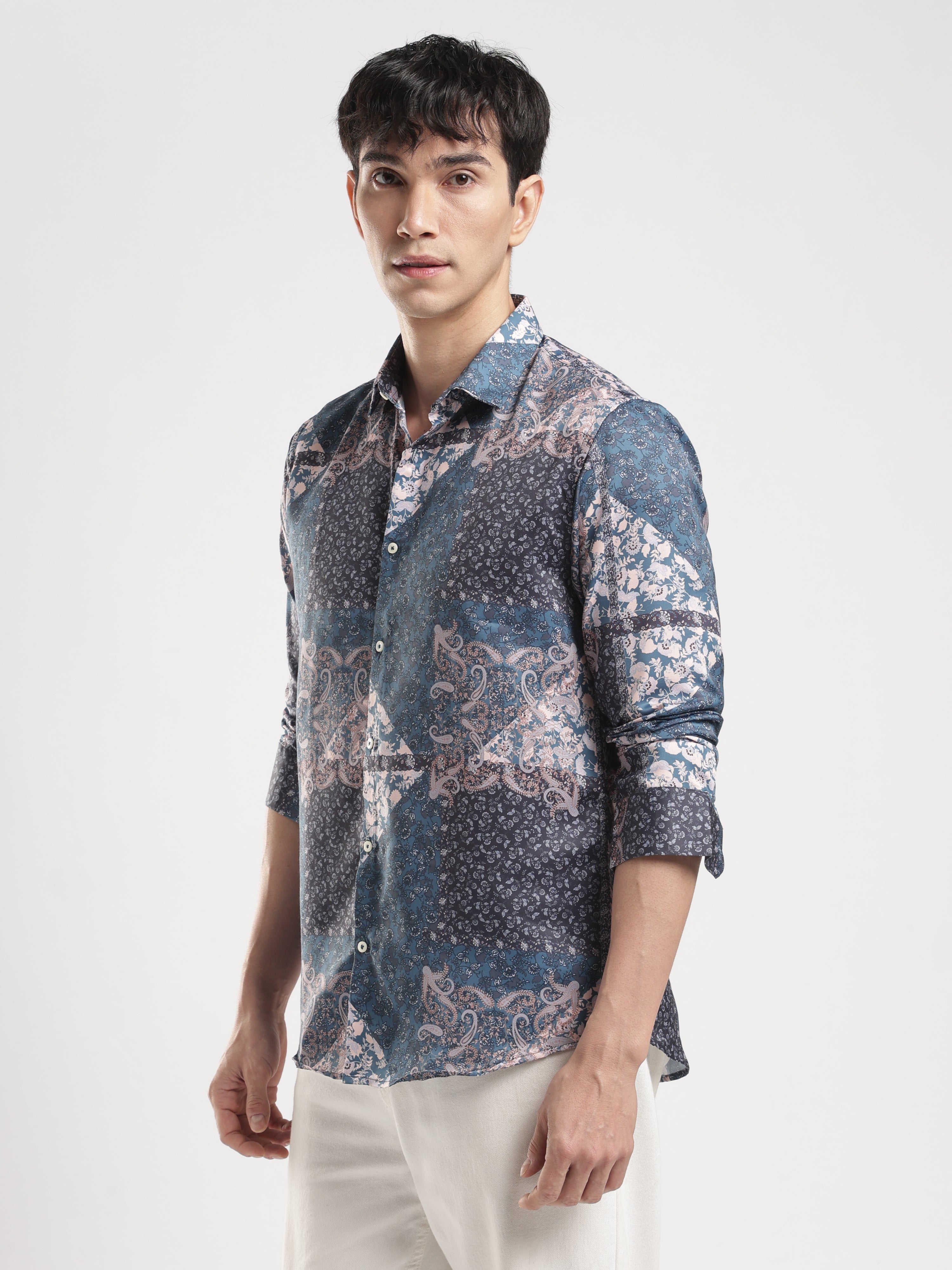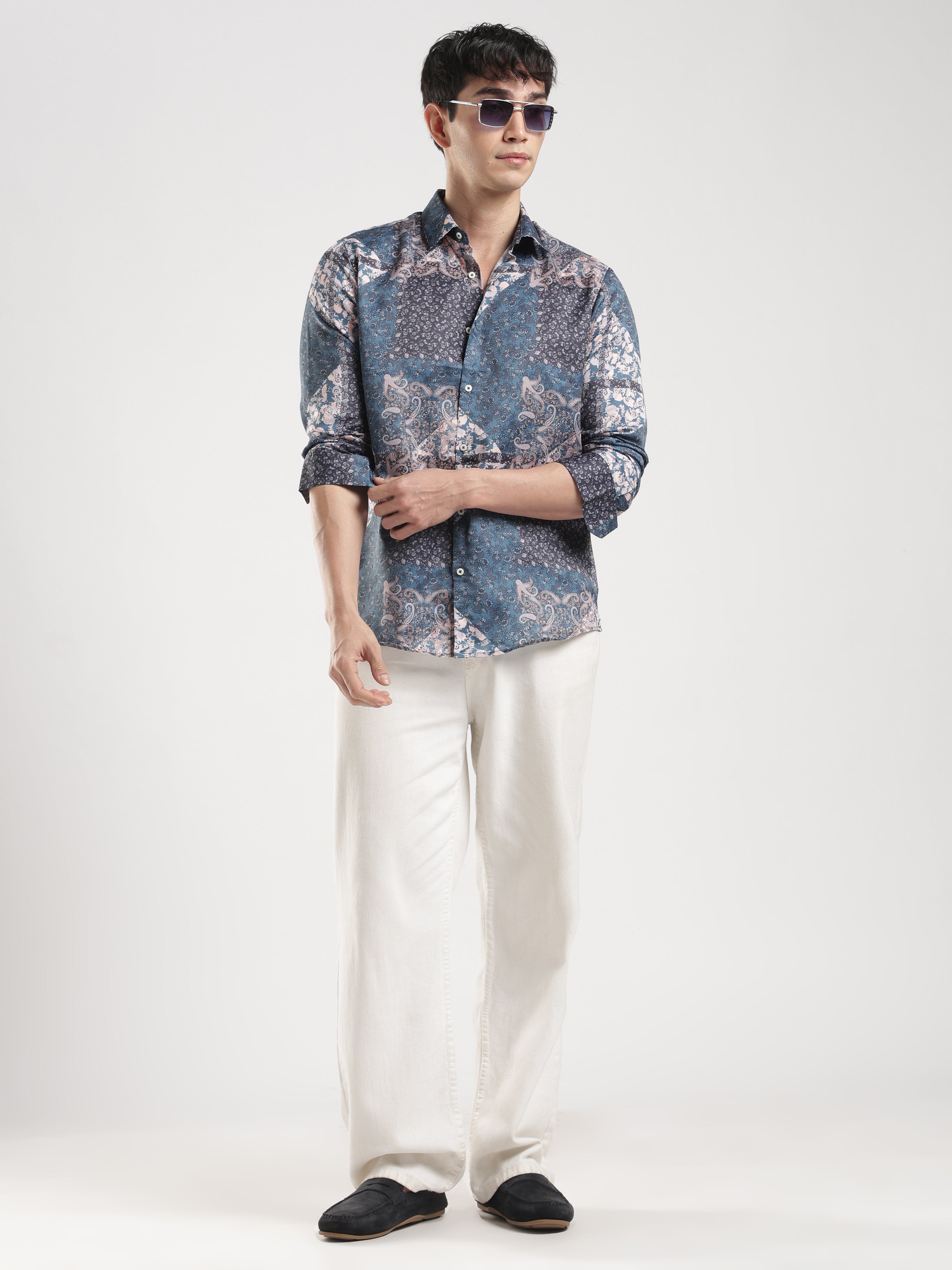 Catchy Customer Line: "Style That Moves, Fashion That Grooves: Feel the Beat with The Electric Boogie Shirt!" Elevate your style game with "The Electric Boogie Shirt," your ultimate smart casual companion. Crafted from luxurious Satin Muslin fabric, this Blue Color Printed Full Sleeve Shirt offers a tailored slim fit and a sophisticated spread collar. With its dynamic print and impeccable craftsmanship, it's the perfect choice for making a lasting impression. Turn heads and light up the night with "The Electric Boogie Shirt."