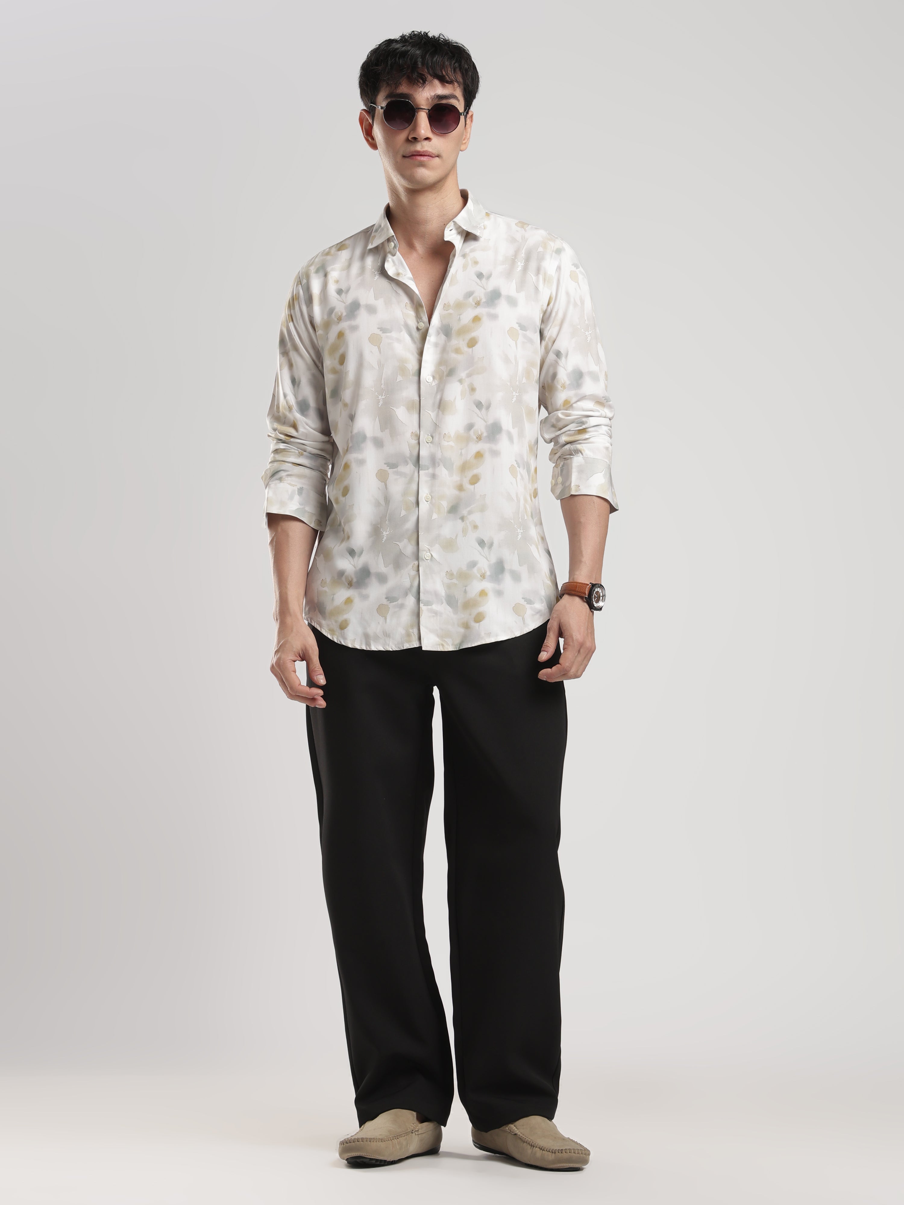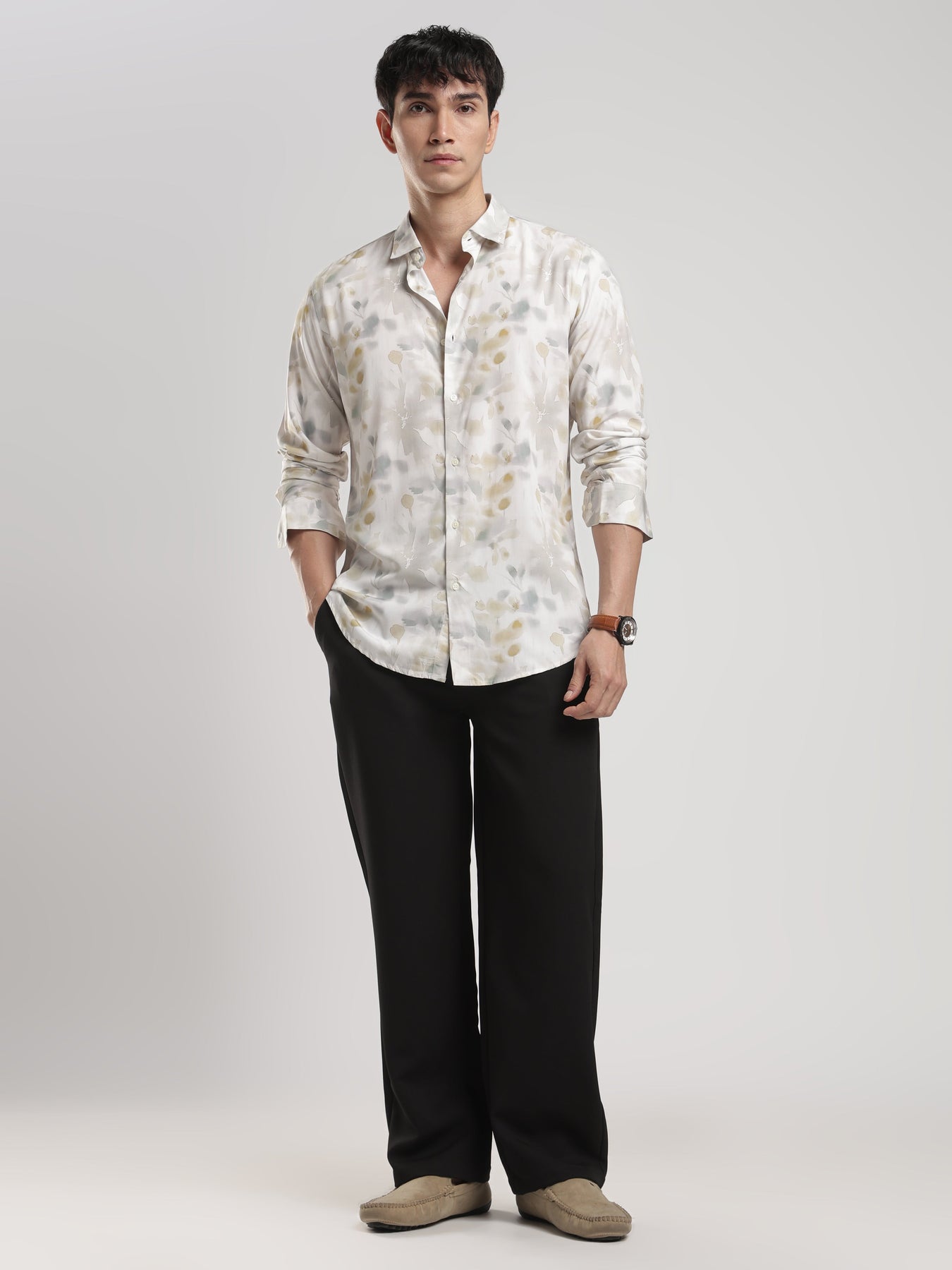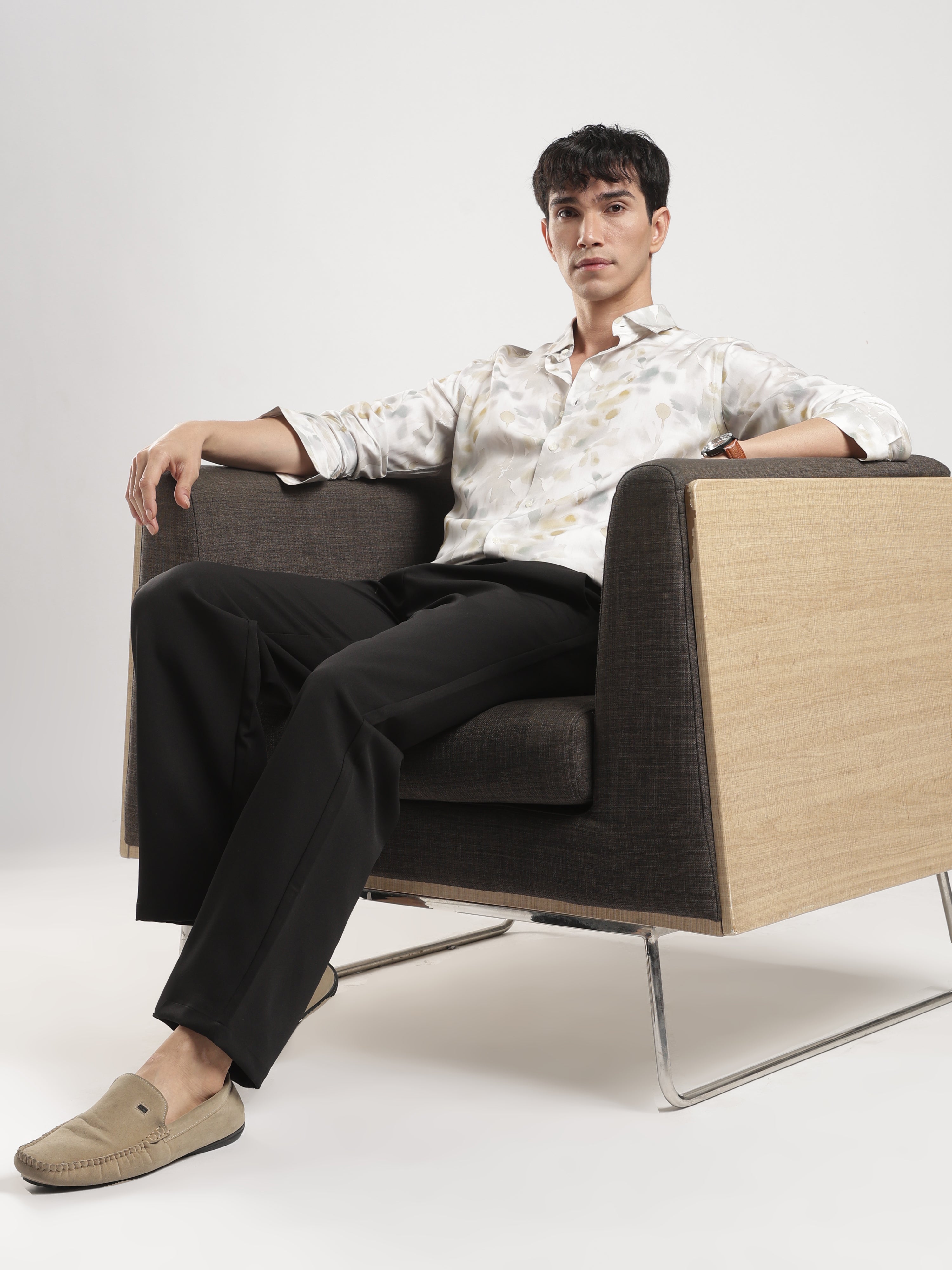 "Your Style Companion, Time After Time!" Get ready to turn heads with our "Time After Time Shirt." Made from luxurious Rayon Modal fabric, this slim-fit shirt is designed to keep you comfortable and stylish all day long. Whether it's a business meeting or a casual outing, its printed design and spread collar make it the perfect choice, time after time!
