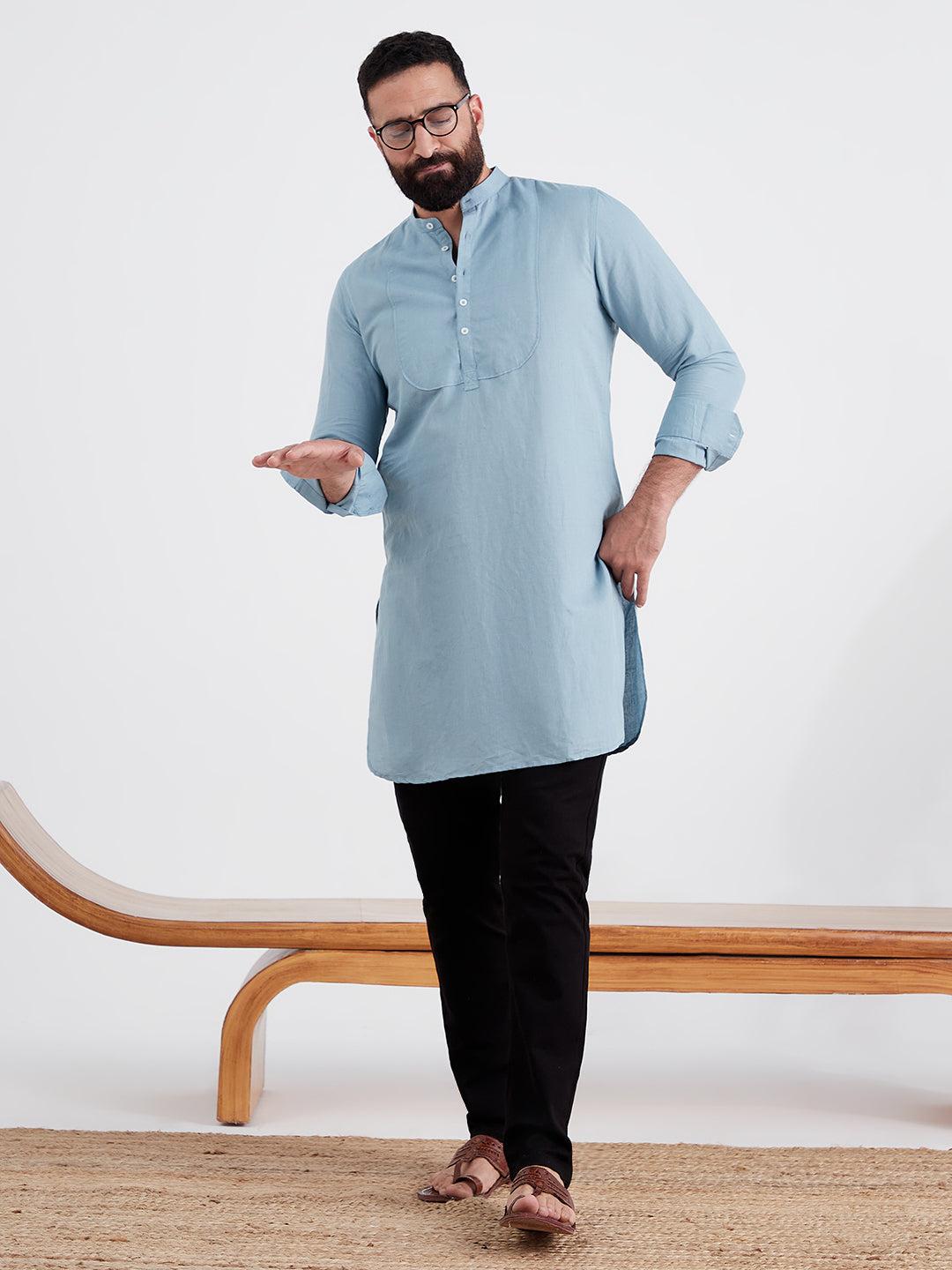 This SkyBlue Kurta is a menswear classic. These Mandarin Kurta help add that diffrentiation to your collection.