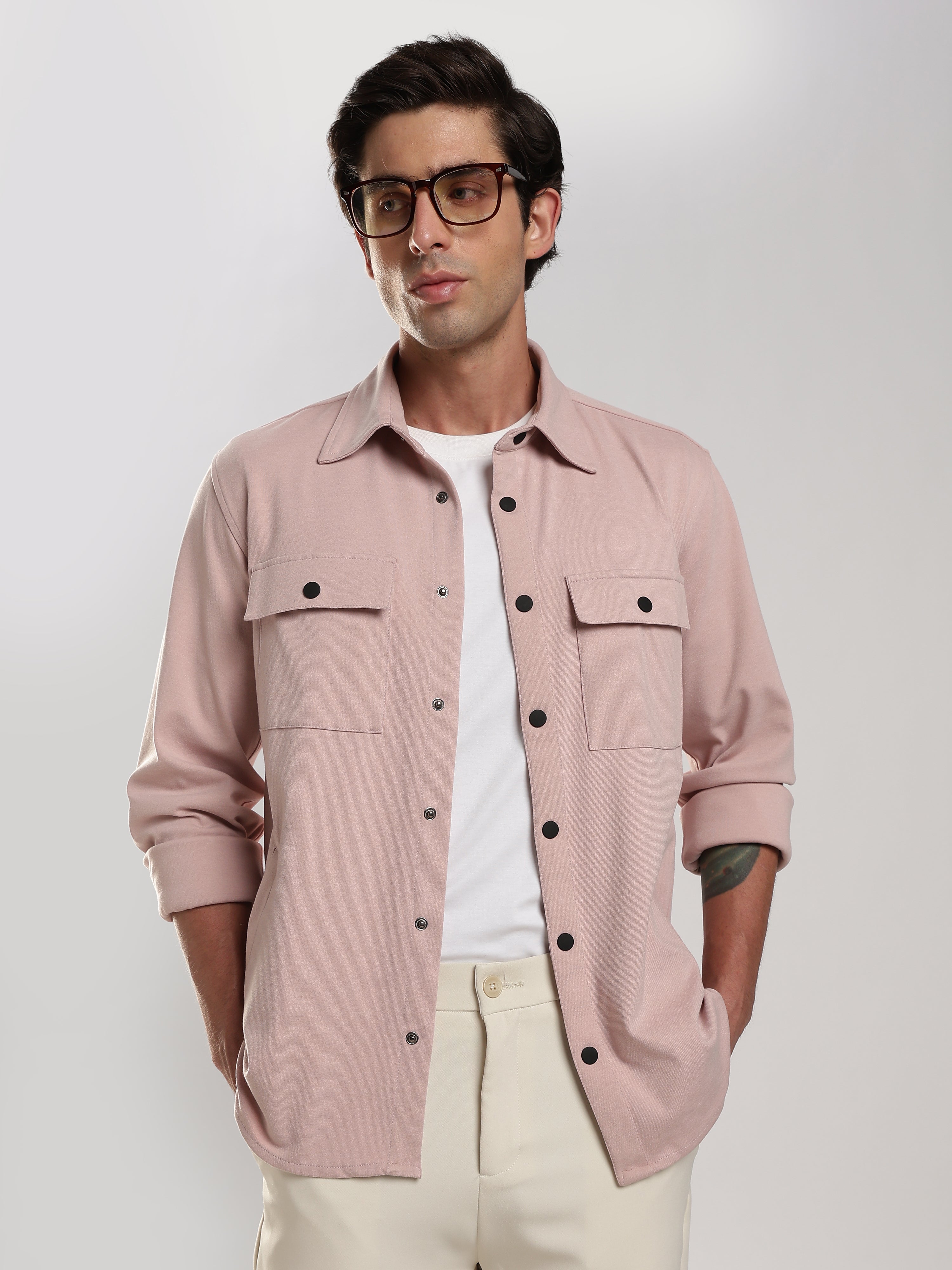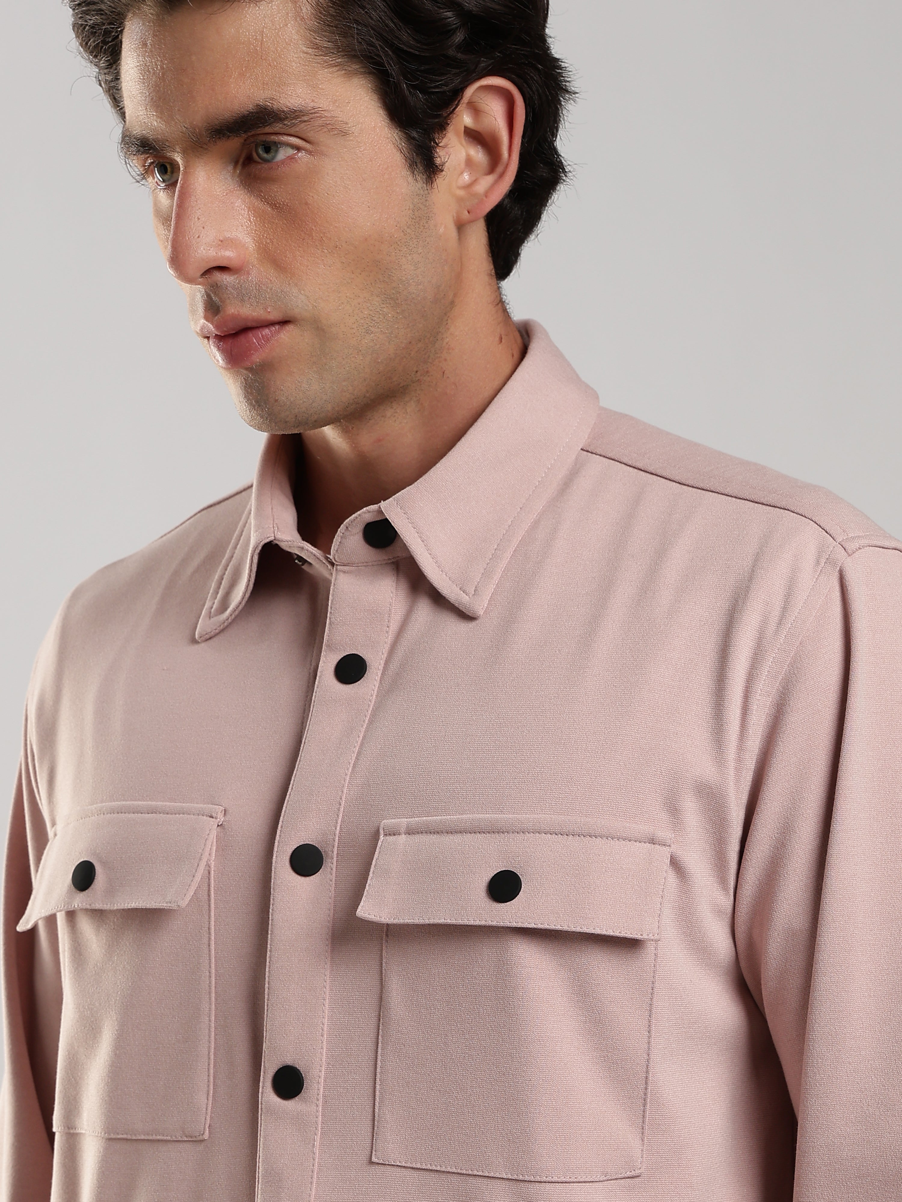 Upgrade your layering game with this Pink Solid Regular Fit Shacket, we call it Smart Shack - the perfect blend of a shirt and a jacket. Designed for modern versatility, this shacket adds effortless structure to your outfit while keeping you comfortable throughout the day.
