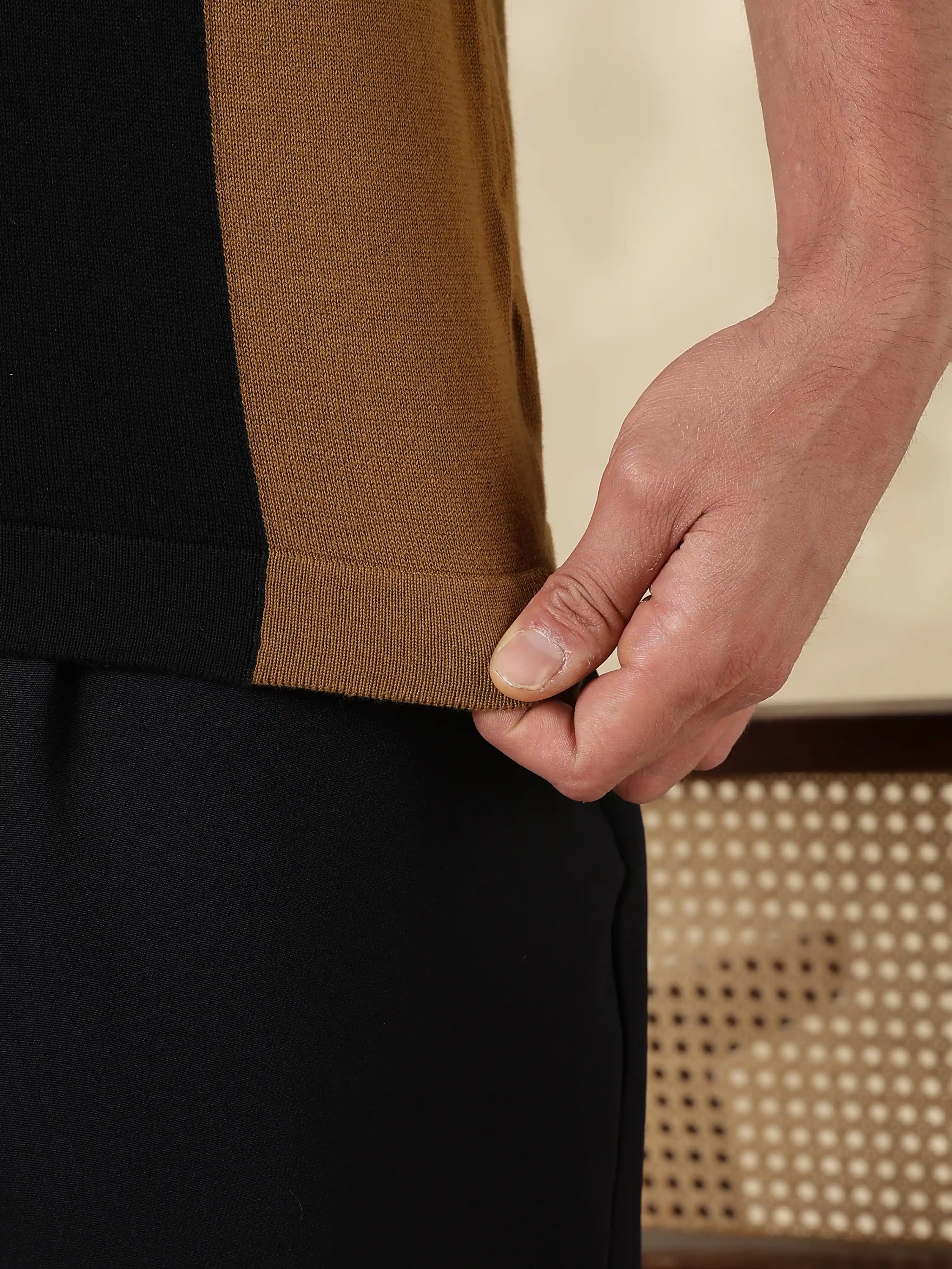 Upgrade your everyday essentials with this Brown Colour Block Slim Fit Round Neck Flat Knit T-Shirt – crafted for men who prefer a sharp, structured, and premium look. Designed with a modern slim fit and subtle texture, this flat knit polo t-shirt delivers effortless style for casual outings, smart-casual meetings, and evening wear.