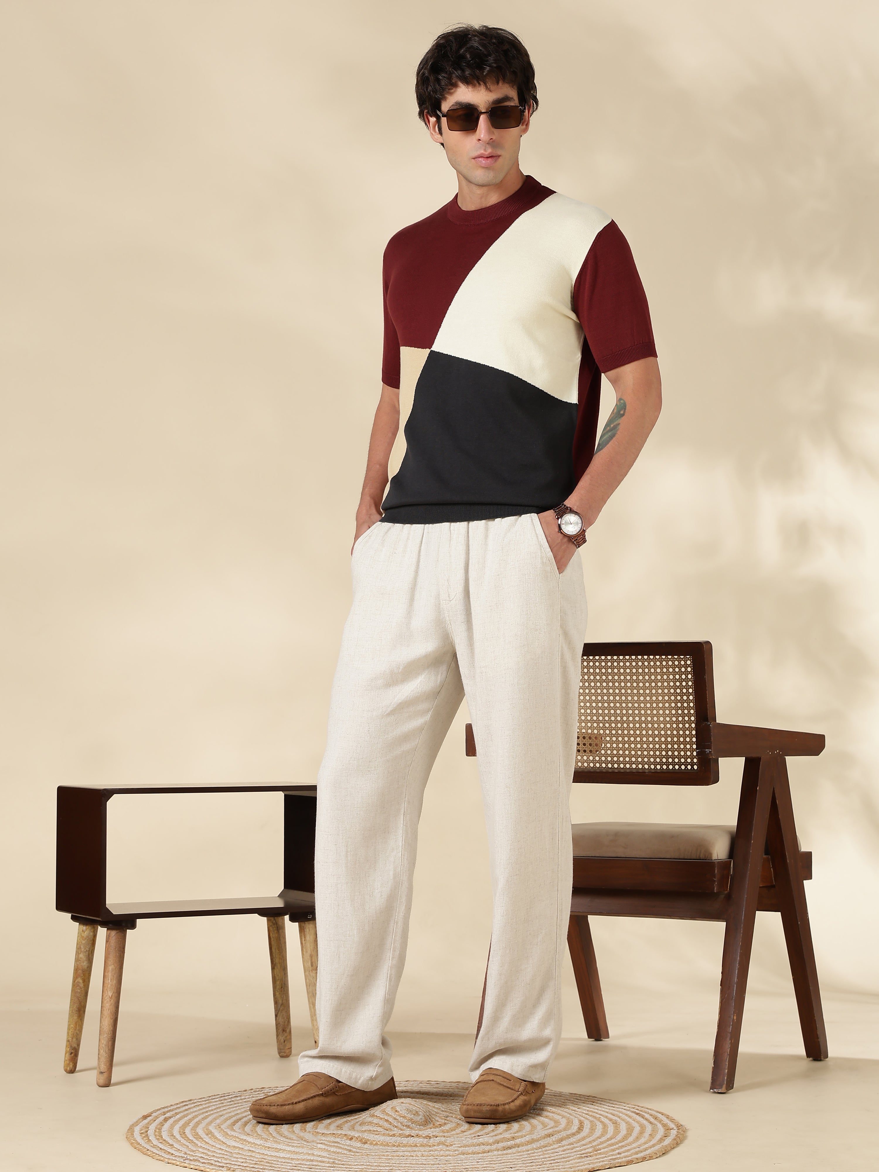 Upgrade your everyday essentials with this Brown Colour Block Slim Fit Round Neck Flat Knit T-Shirt – crafted for men who prefer a sharp, structured, and premium look. Designed with a modern slim fit and subtle texture, this flat knit polo t-shirt delivers effortless style for casual outings, smart-casual meetings, and evening wear.