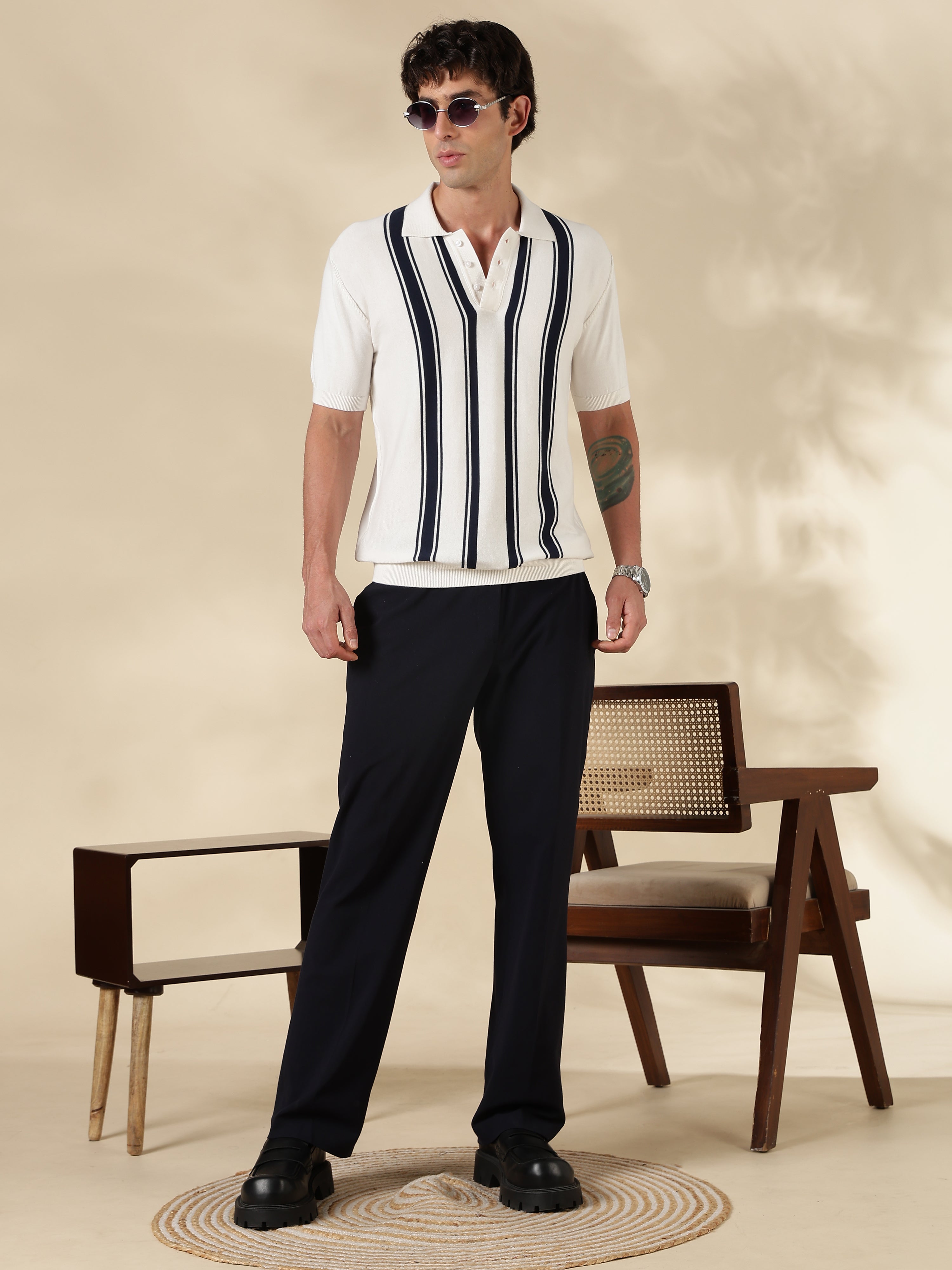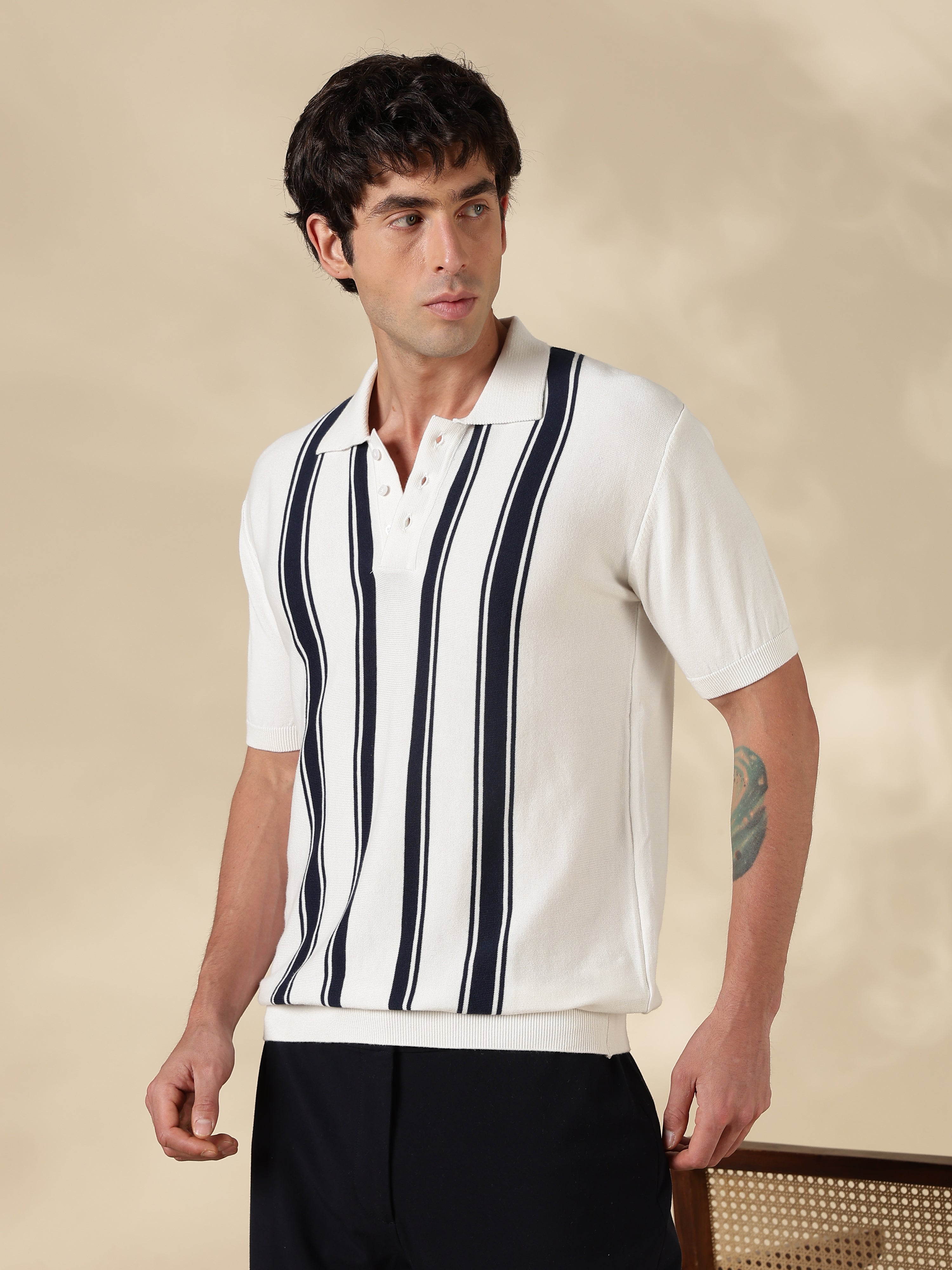 Upgrade your everyday essentials with this White Stripe Slim Fit Polo Collar Flat Knit T-Shirt – crafted for men who prefer a sharp, structured, and premium look. Designed with a modern slim fit and subtle texture, this flat knit polo t-shirt delivers effortless style for casual outings, smart-casual meetings, and evening wear.