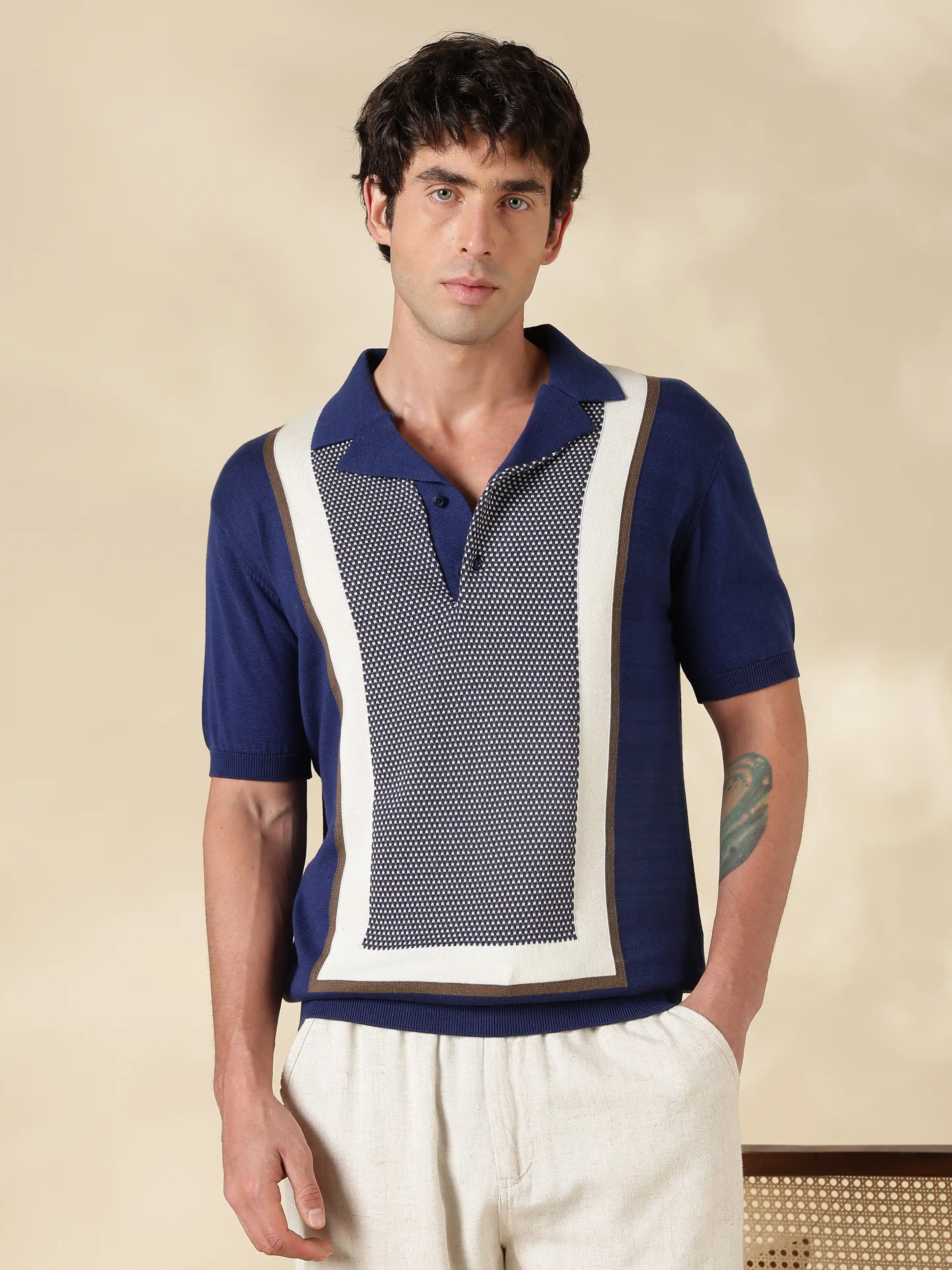 Upgrade your everyday essentials with this Navy Color Block Slim Fit Polo Collar Flat Knit T-Shirt – crafted for men who prefer a sharp, structured, and premium look. Designed with a modern slim fit and subtle texture, this flat knit polo t-shirt delivers effortless style for casual outings, smart-casual meetings, and evening wear.