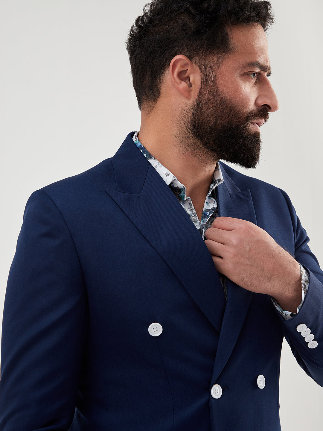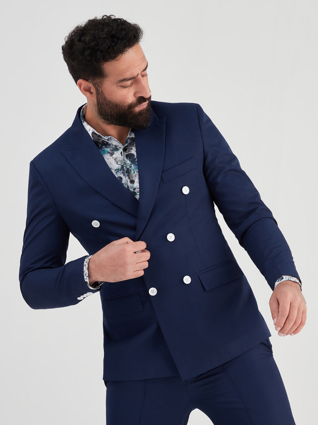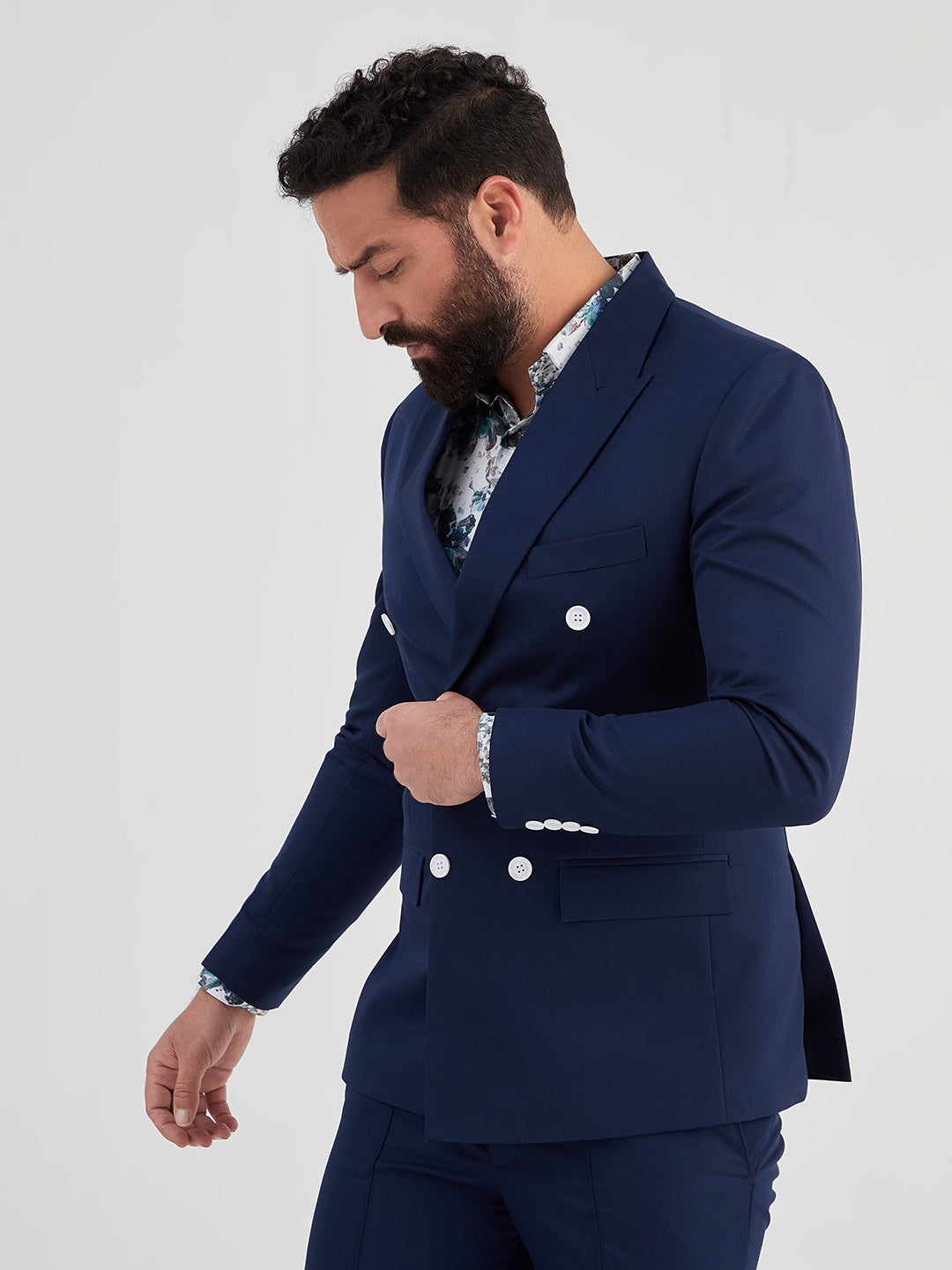 Elevate your wardrobe with the Ecstacy Of Sea Blazer, a men's double-breasted blazer in Poly Viscose Lycra that delivers a polished, professional look with comfortable stretch for all-day confidence.