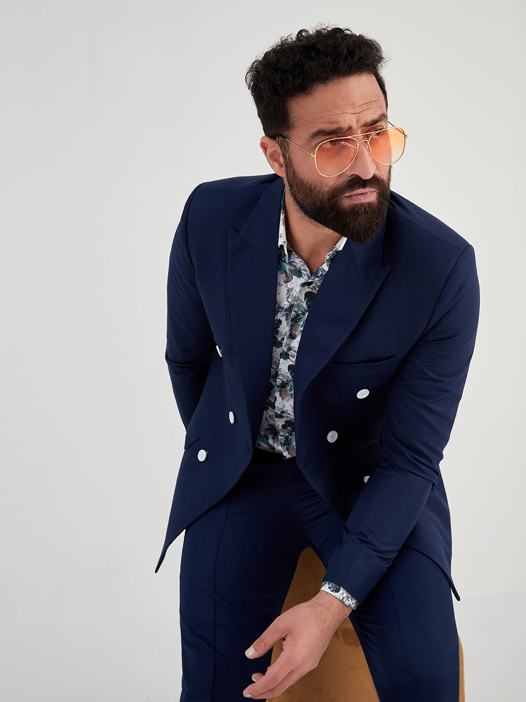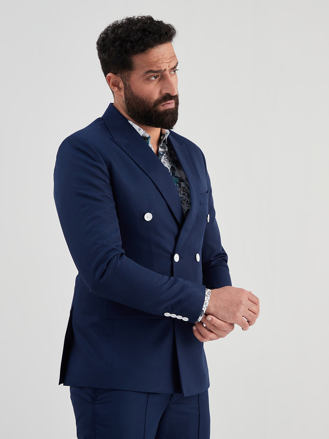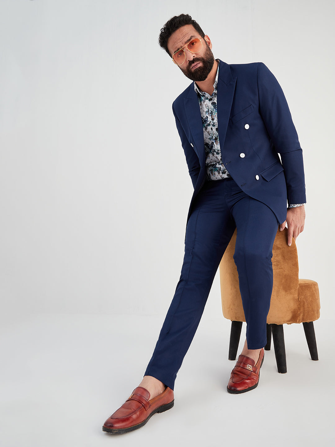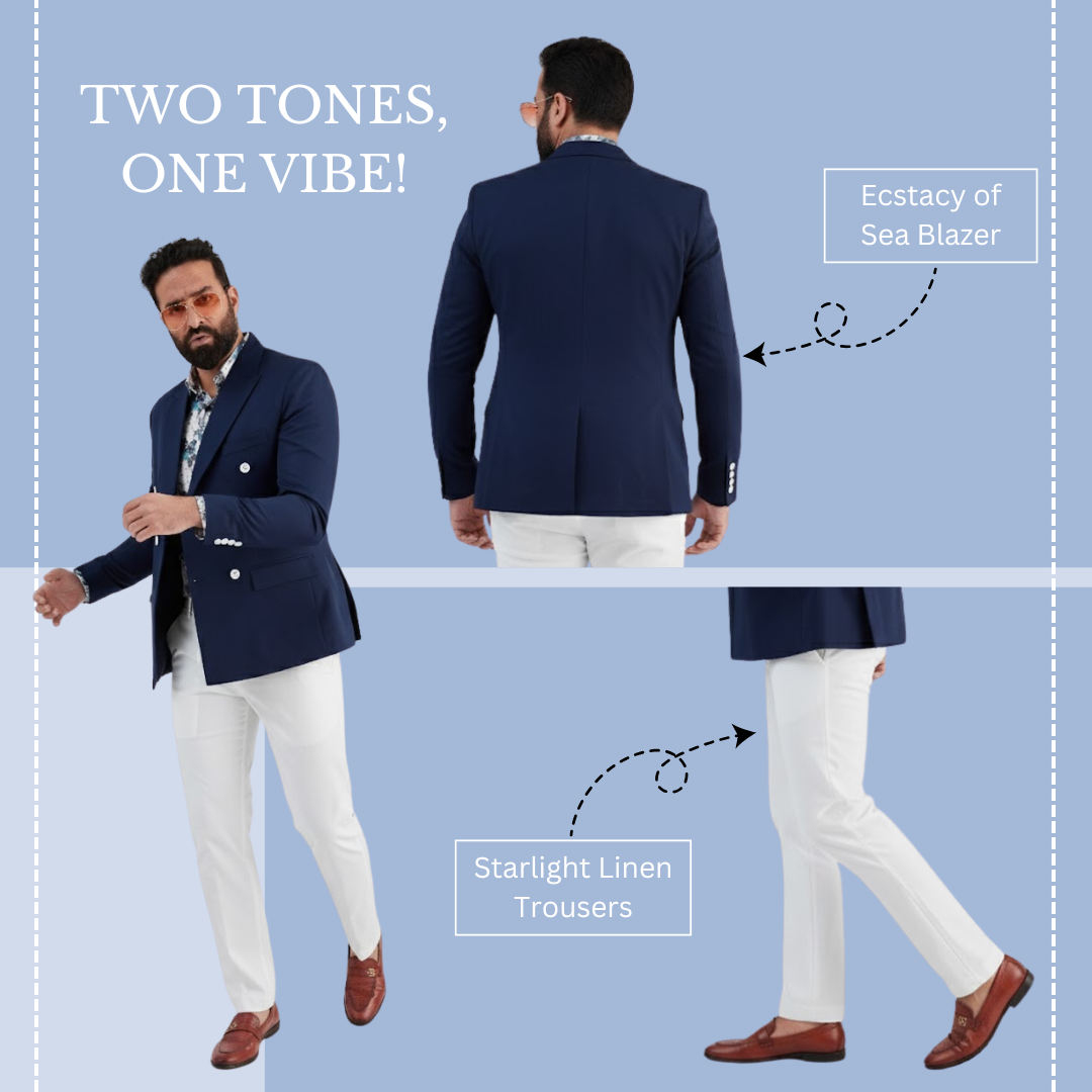 Elevate your wardrobe with the Ecstacy Of Sea Blazer, a men's double-breasted blazer in Poly Viscose Lycra that delivers a polished, professional look with comfortable stretch for all-day confidence.