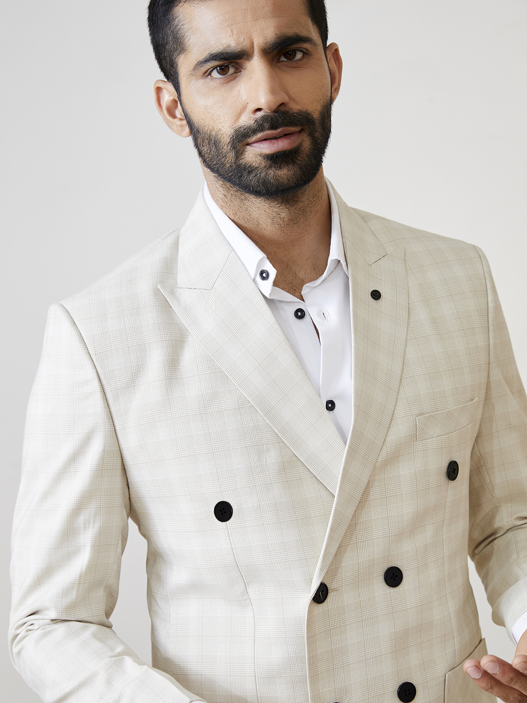 The Anthem Blazer is a timeless, double-breasted men’s blazer that delivers polished office wear and smart casual confidence with a sharp cut, classic tailoring, and perfect drape.