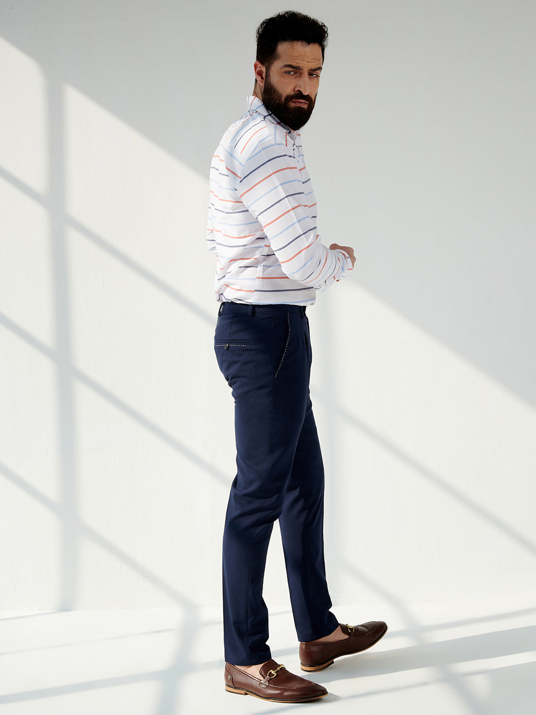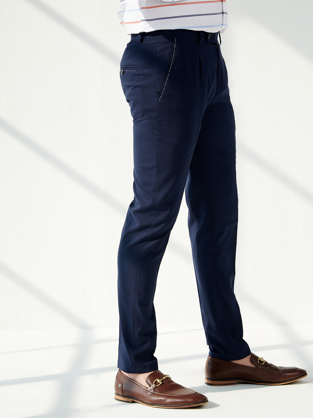 Our trousers come in a structured fit which will ensure that they are neither too tight nor too loose. The perfect tapered length of these ensure that you’re a part of the crème de la crème of the menswear fashion world.