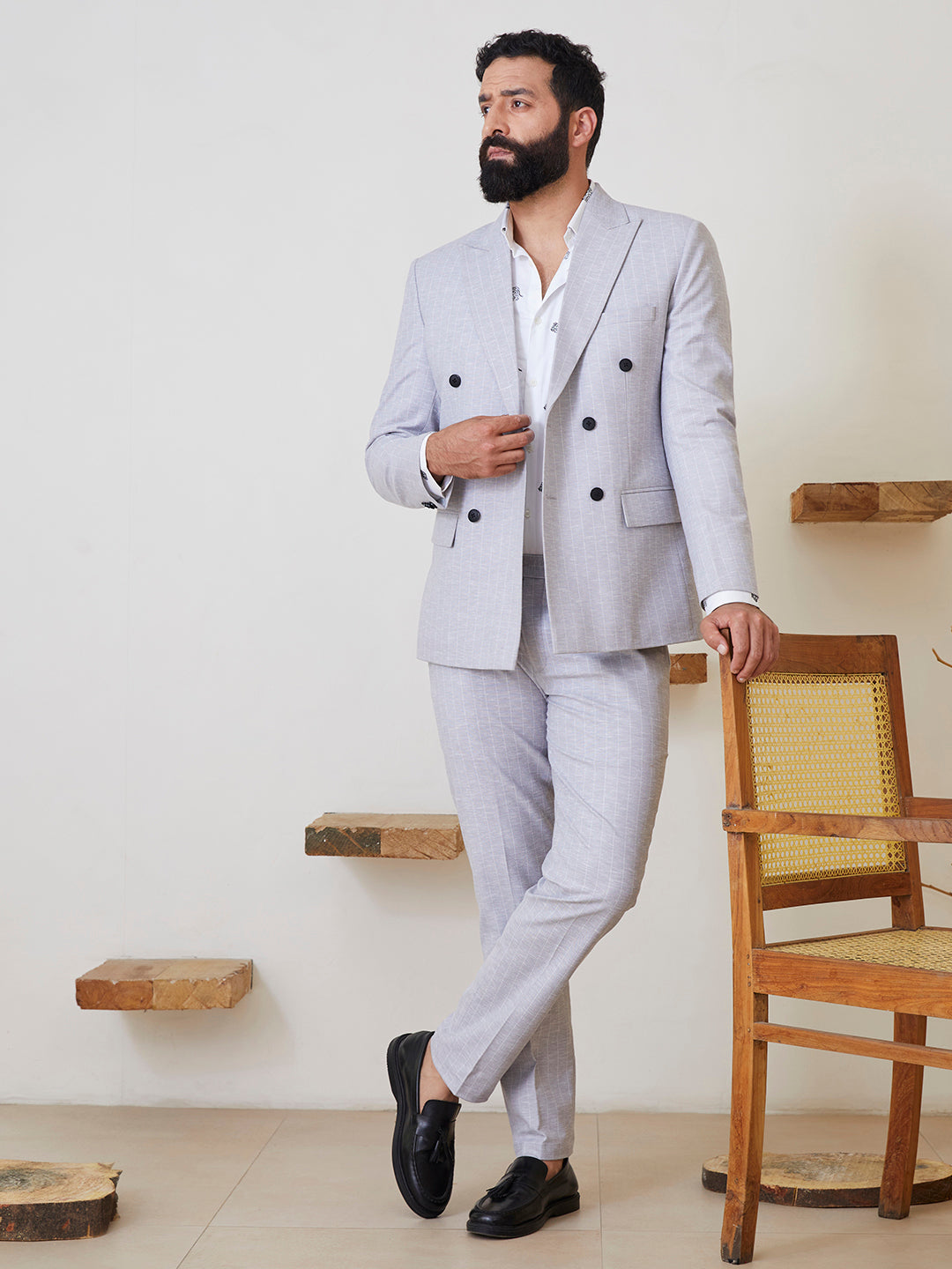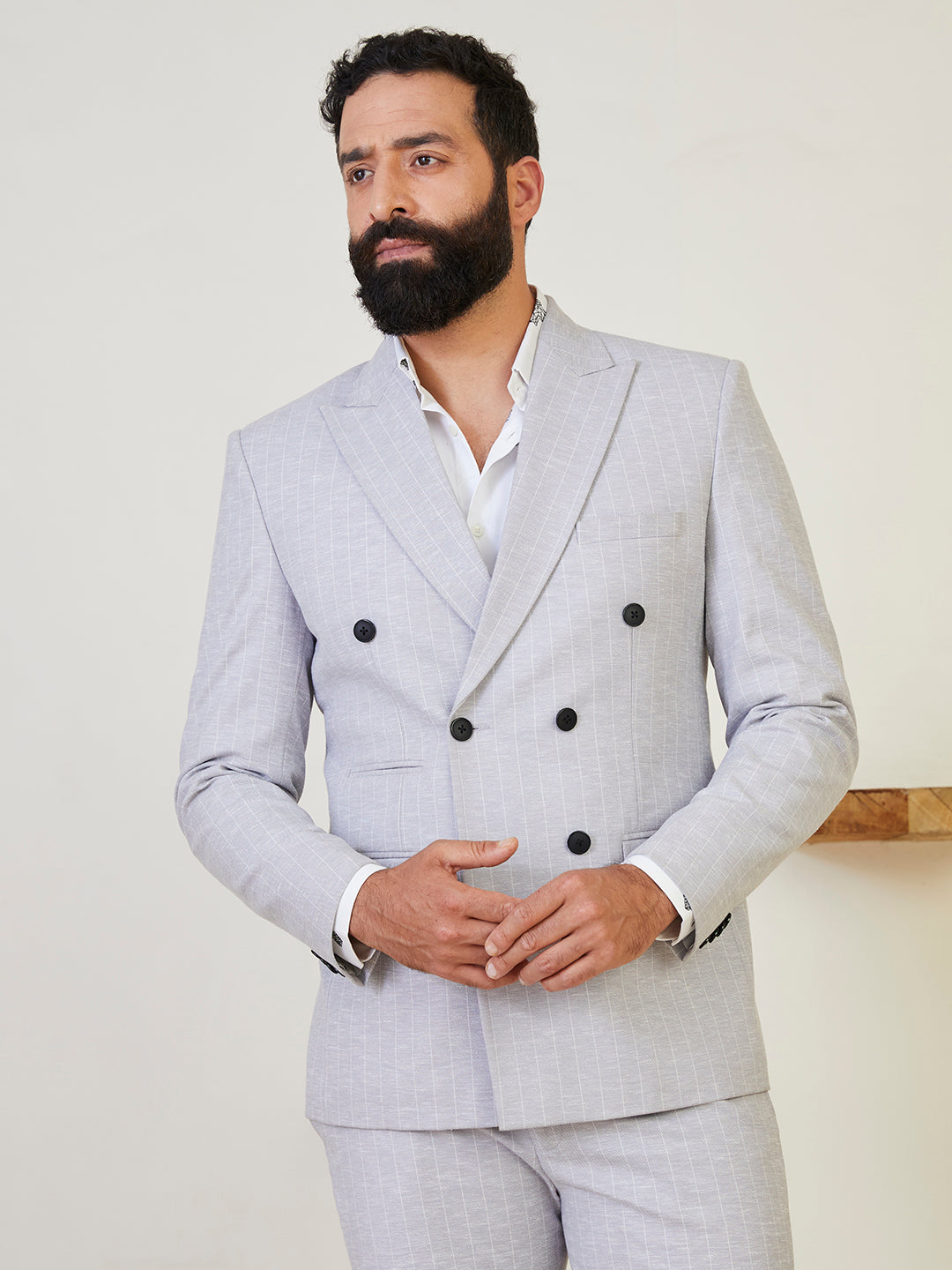 Design: Double-breasted with a sharp, modern silhouette and timeless tailoring.