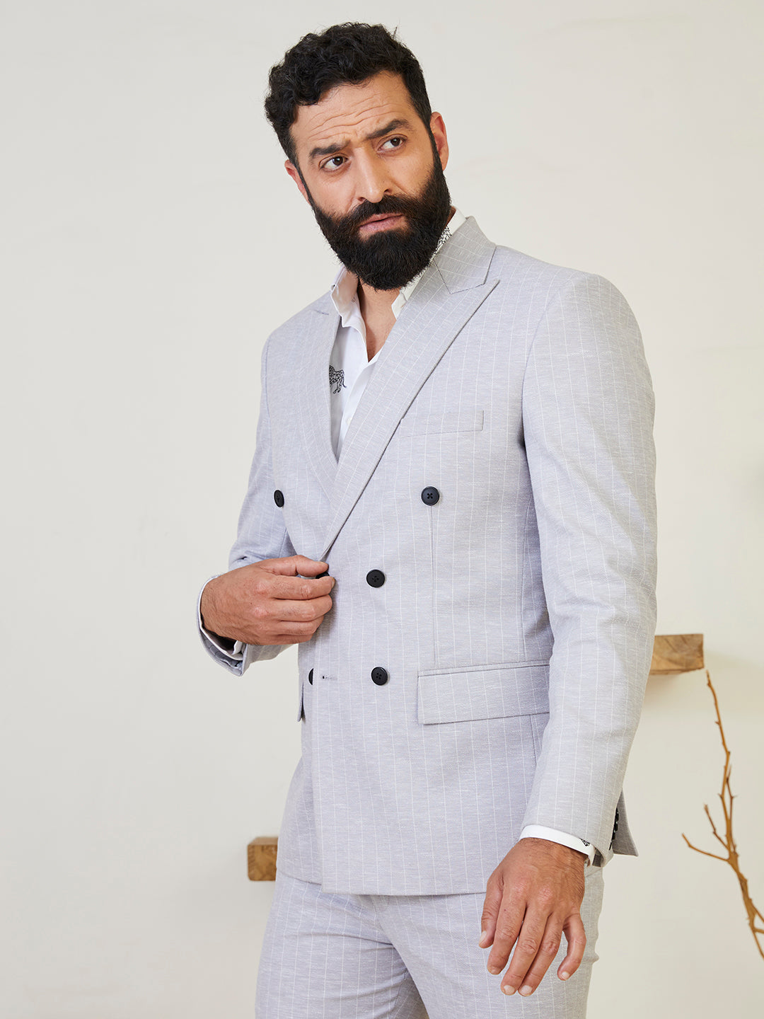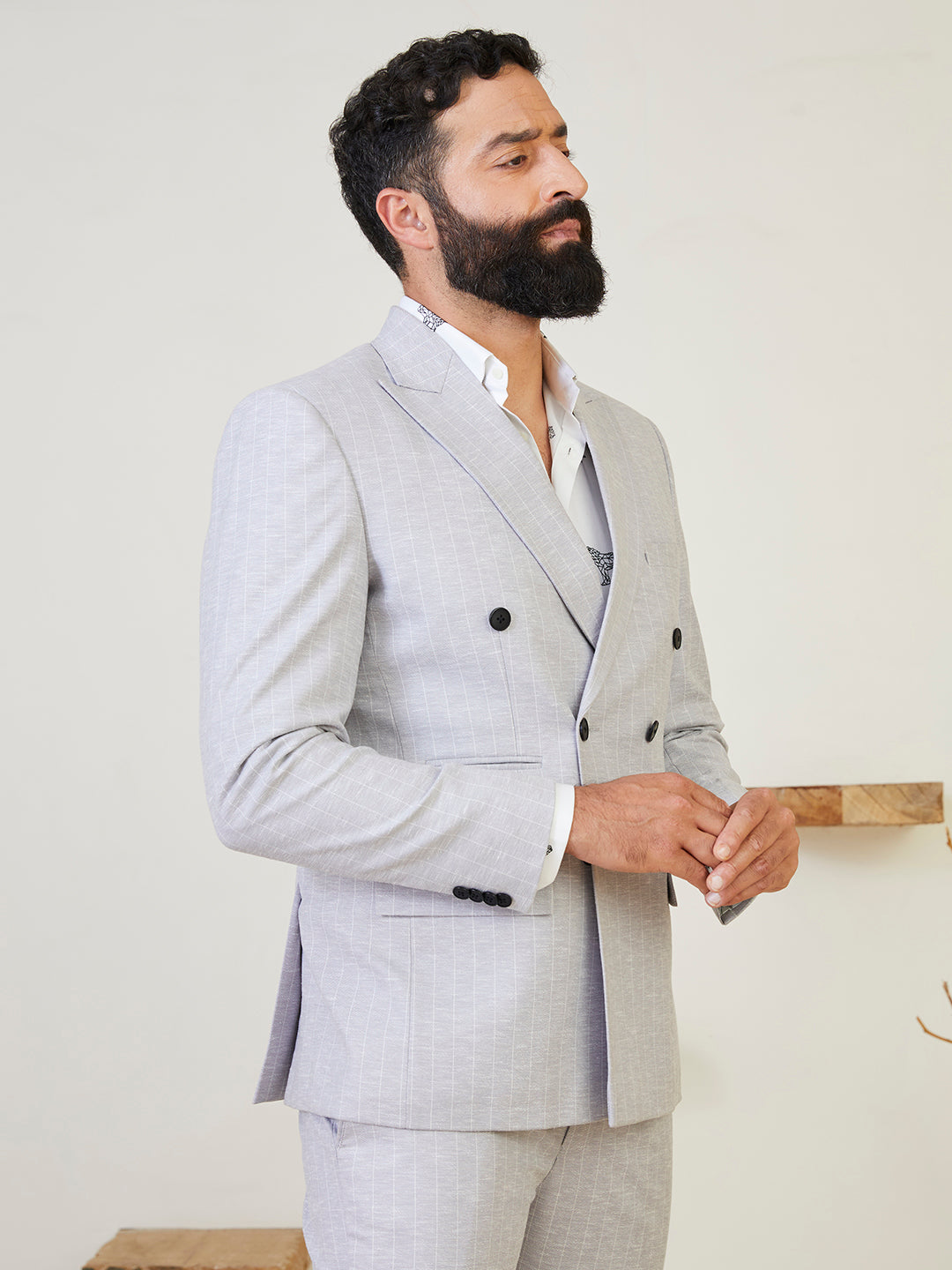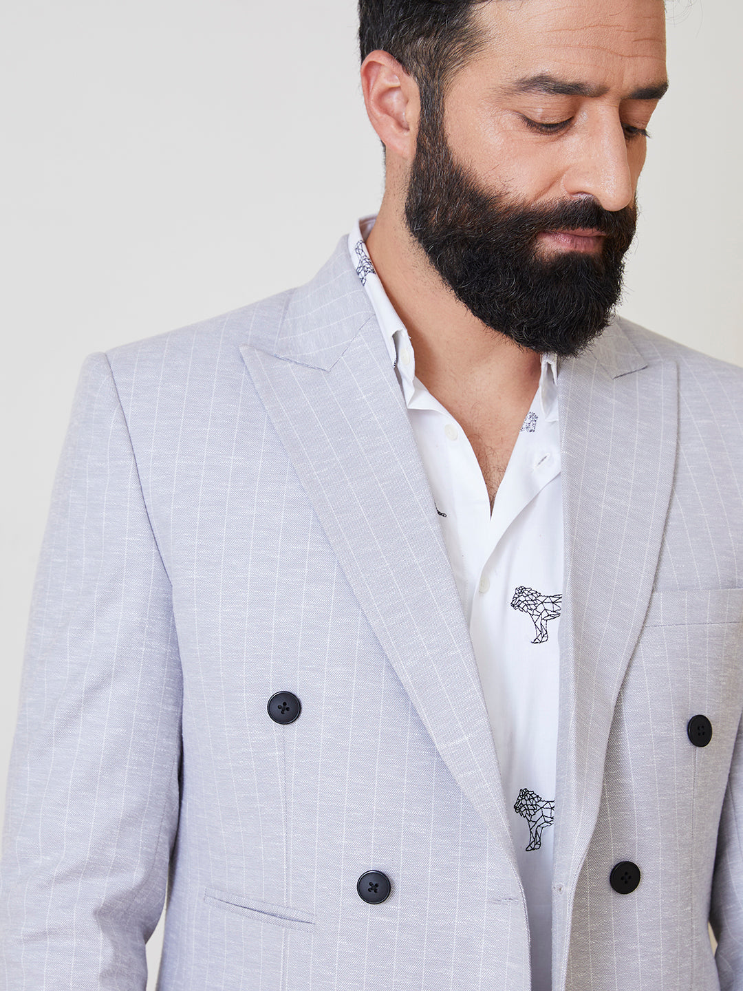 The Riverdale Blazer is the ultimate double-breasted statement piece for men seeking a timeless, powerful look. This poly linen blazer blends smart tailoring with everyday comfort, making it ideal for workwear, formal events, and refined casual outfits. Its modern cut, classic tailoring, and balanced proportions create a confident silhouette that transitions seamlessly from boardroom to after-hours. Invest in a versatile staple that enhances any wardrobe with polish and presence.