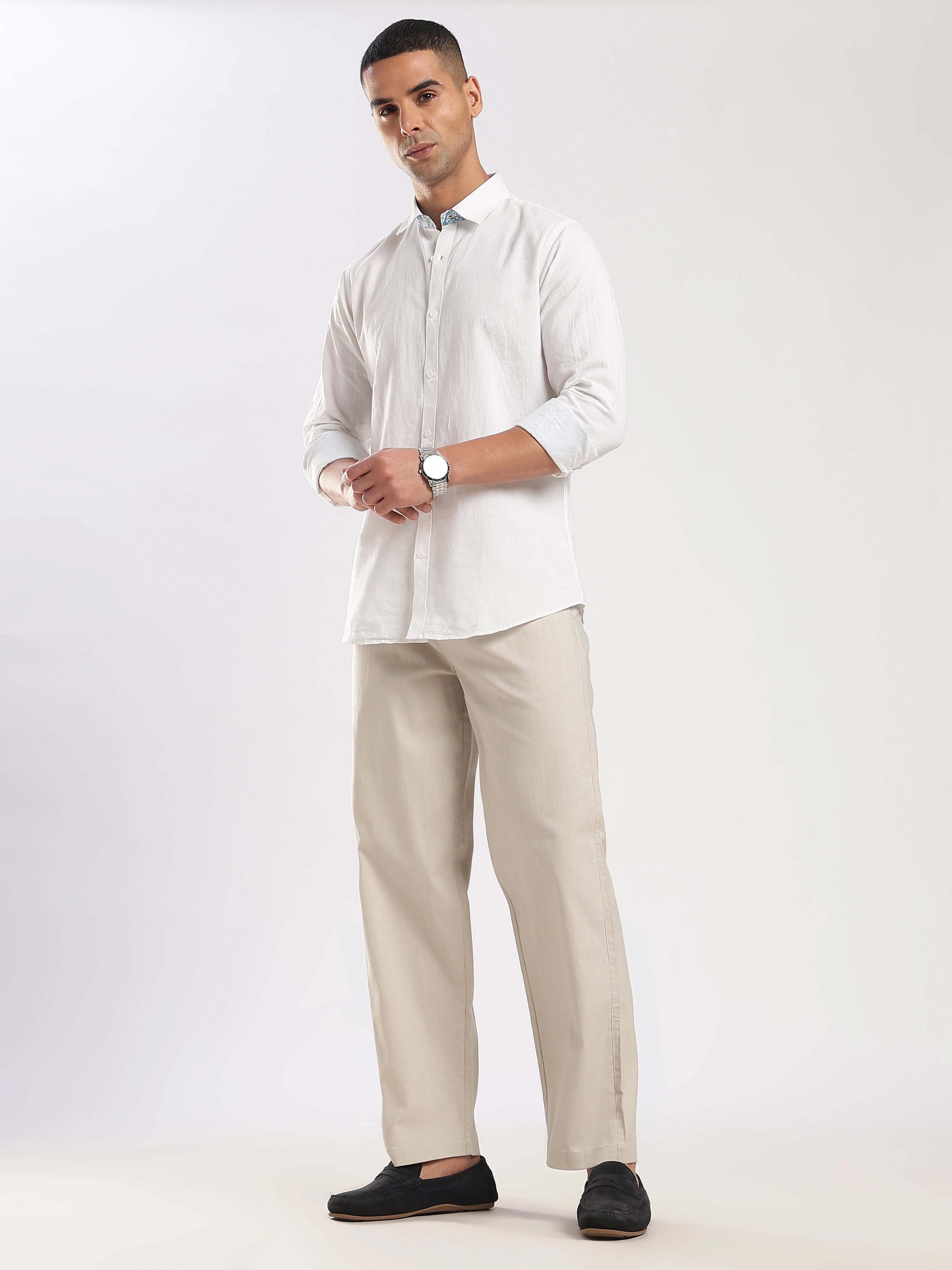 Fit: Regular Fit - balanced structure with all-day comfort Color: BEIGE - a modern, earthy tone for versatile styling Fabric: Poly-Linen Blend - lightweight, breathable & wrinkle-resistant Waist: Mid-rise with a comfortable fit Closure: Button closure with zip fly Pockets: Functional side and back pockets for daily essentials Occasion: Ideal for casual outings, travel, and semi-formal wear Model Info: Model is wearing size 34