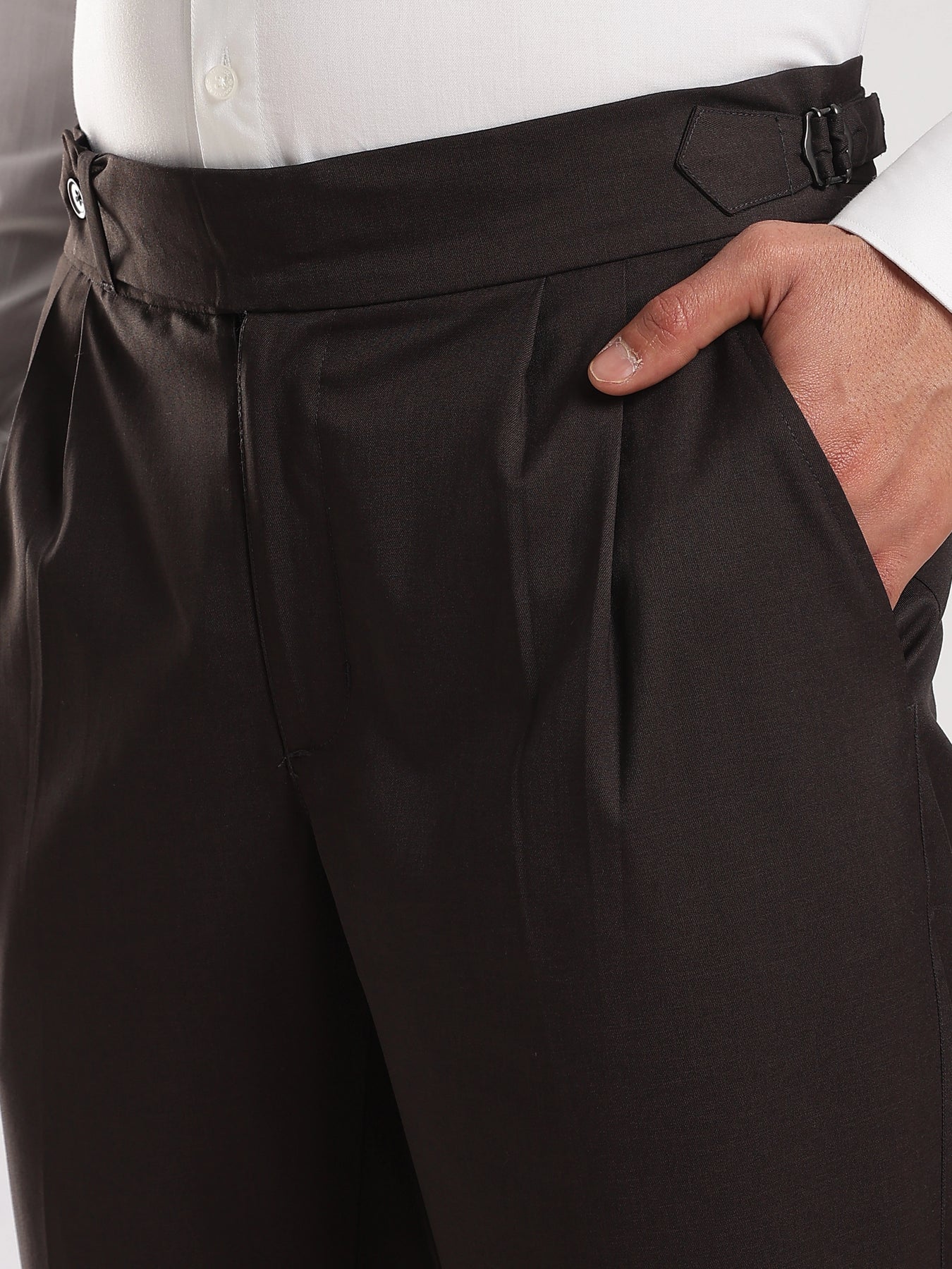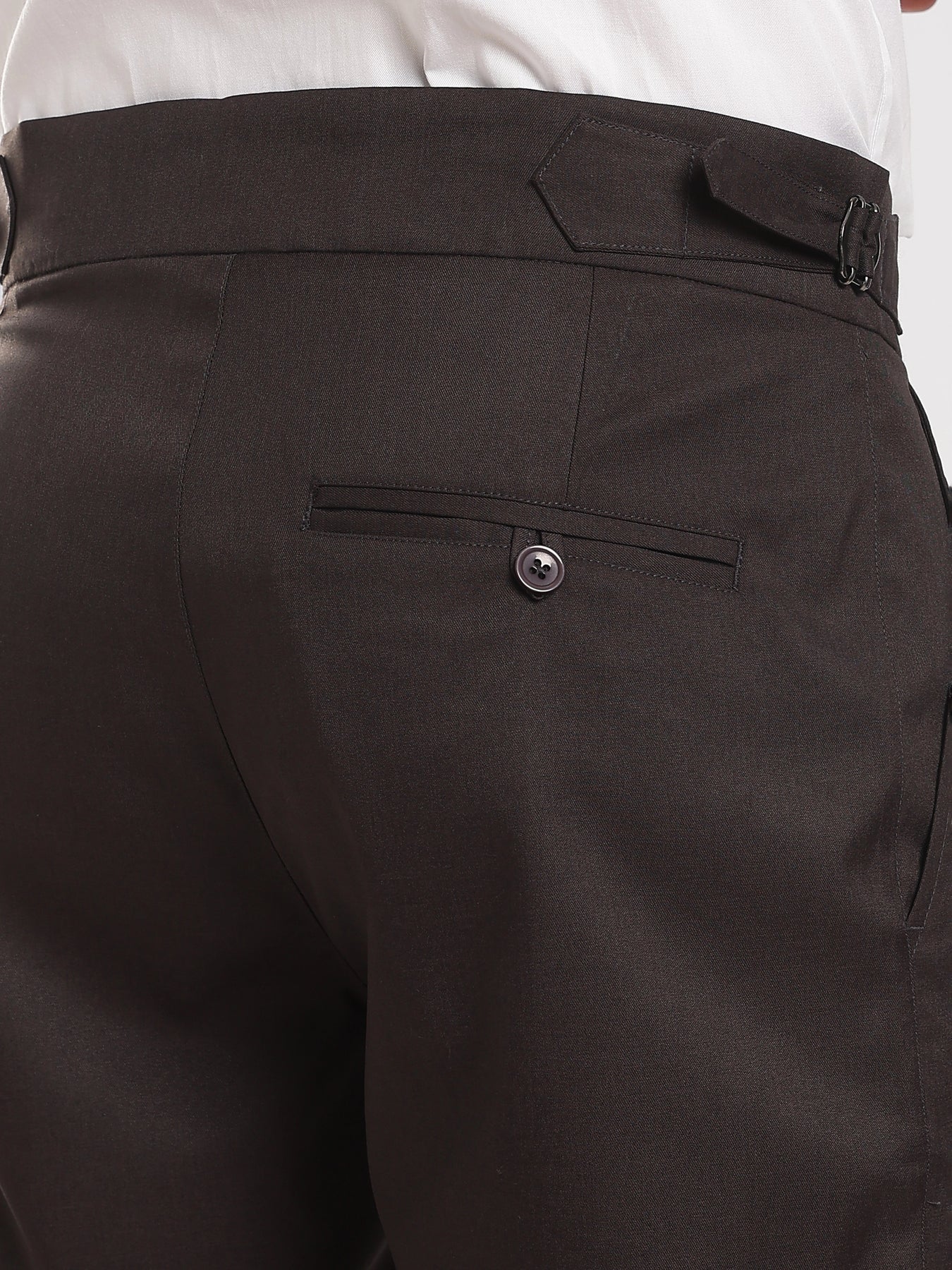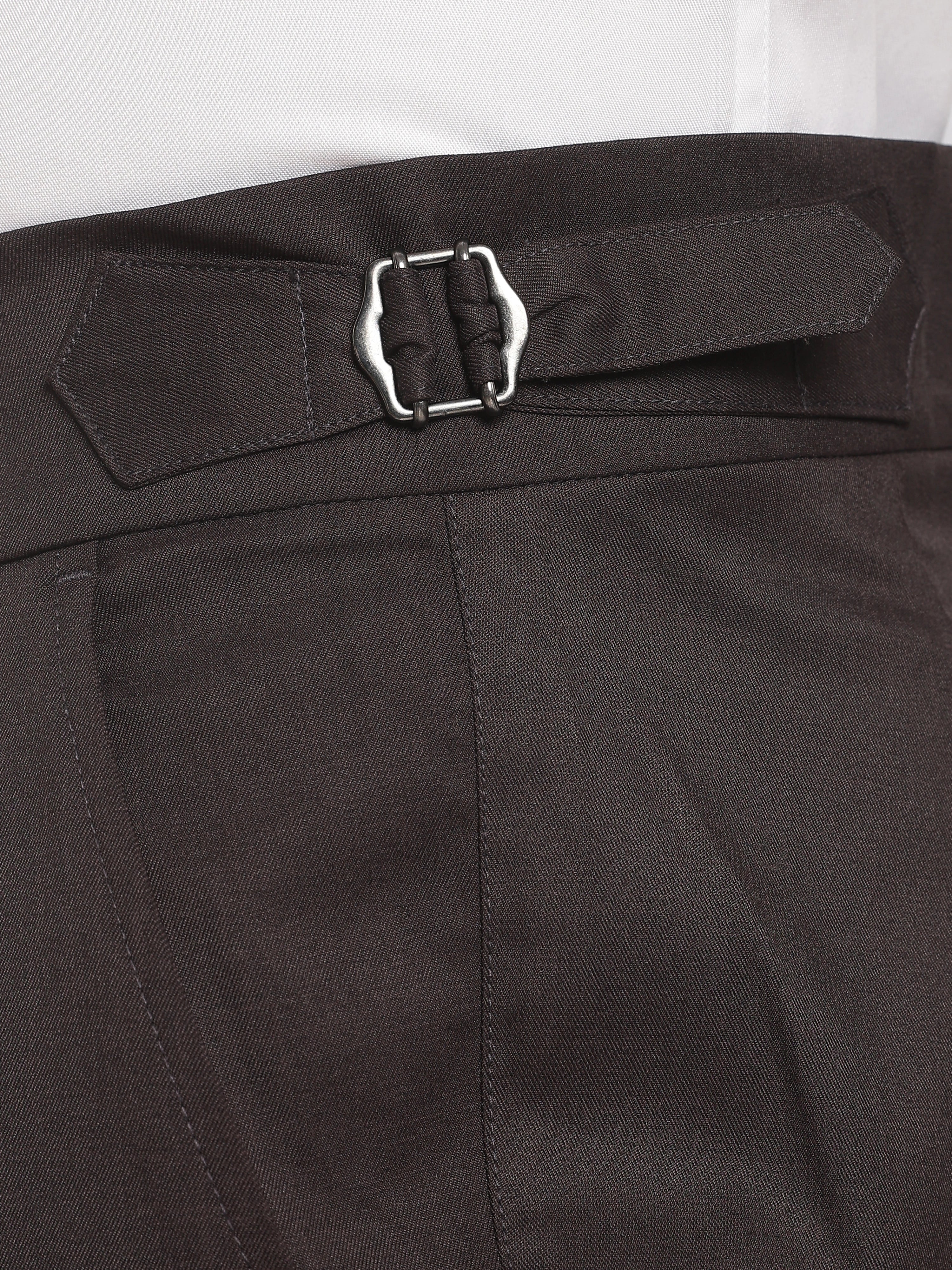 Elevate your wardrobe with our Black Poly Regular Fit Gurkha Pant Ð a perfect fusion of classic tailoring and modern comfort. Featuring the iconic Gurkha waistband, these pants bring a sophisticated edge to your everyday style.