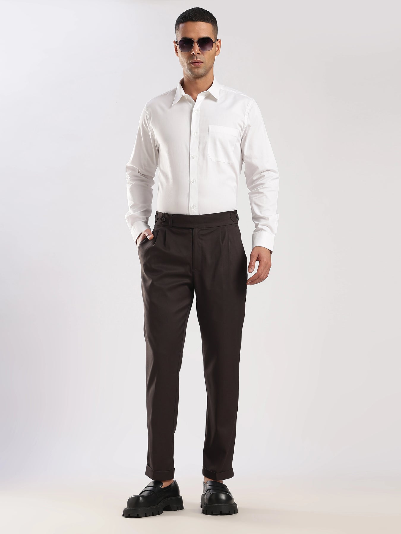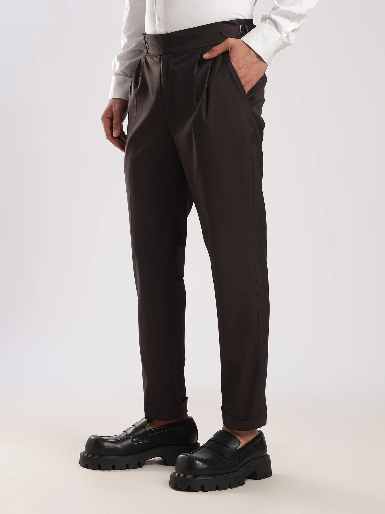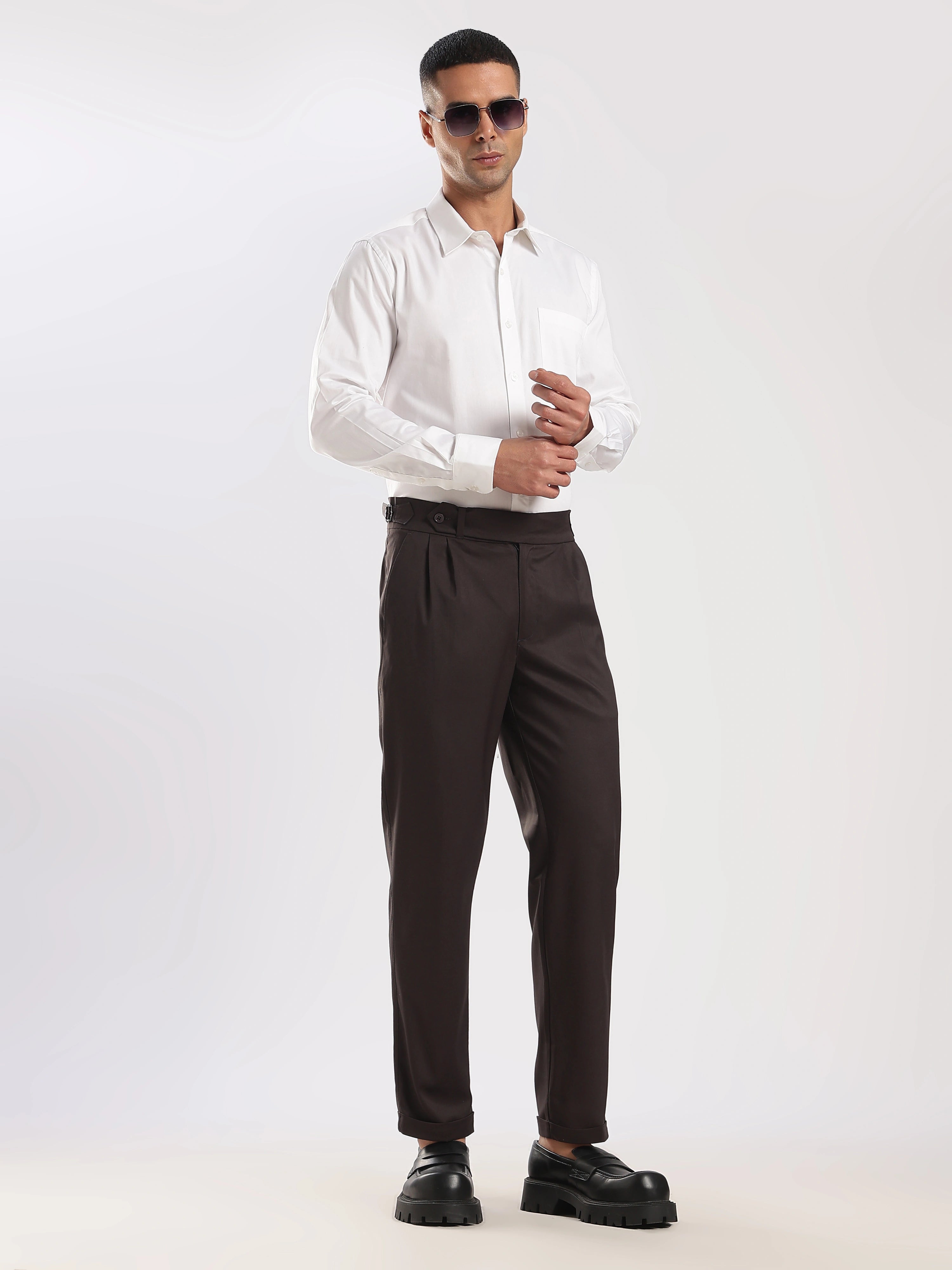 Elevate your wardrobe with our Black Poly Regular Fit Gurkha Pant Ð a perfect fusion of classic tailoring and modern comfort. Featuring the iconic Gurkha waistband, these pants bring a sophisticated edge to your everyday style.