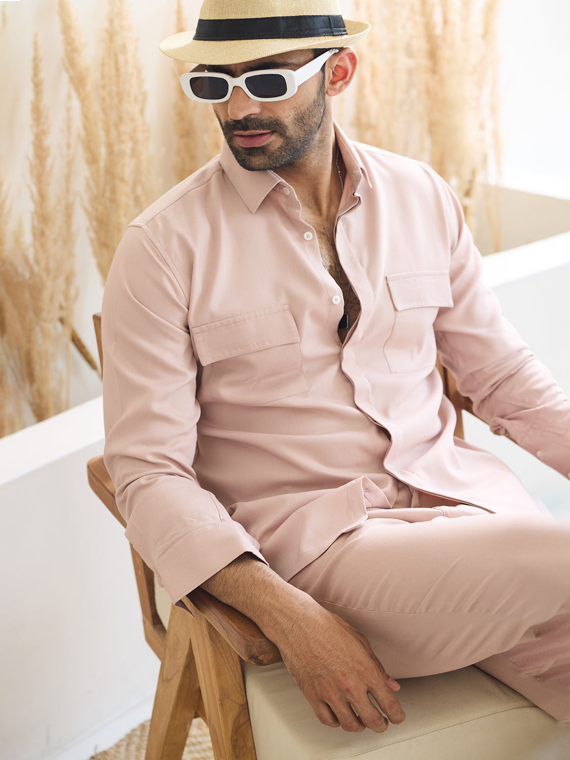 Elevate your wardrobe with our Pink Coral Chic Solid Shirt, a symbol of effortless style and refined elegance. Crafted from a luxurious blend of rayon and polyester, it offers a relaxed fit for all-day comfort, ensuring you feel as good as you look. With the addition of front pockets on both sides, this shirt seamlessly combines functionality with fashion, allowing you to carry your essentials with ease while exuding charm and sophistication. Whether you're dressing up for a smart casual occasion or simply enjoying a day out, this shirt is the perfect choice to make a statement with grace and poise.