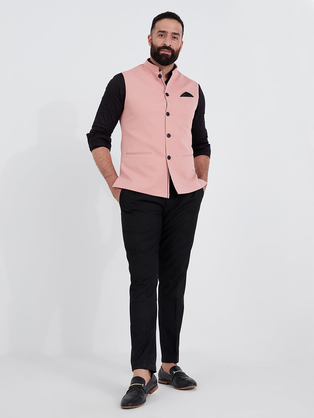 Nehru jackets are the new blazers. These sleeveless jackets are the ultimate all weather layering option to keep your casual style in place. The sharp fit will ensure a crisp consequence each time. Don't hesitate to pair this pair with t-shirts, tunics or shirts.