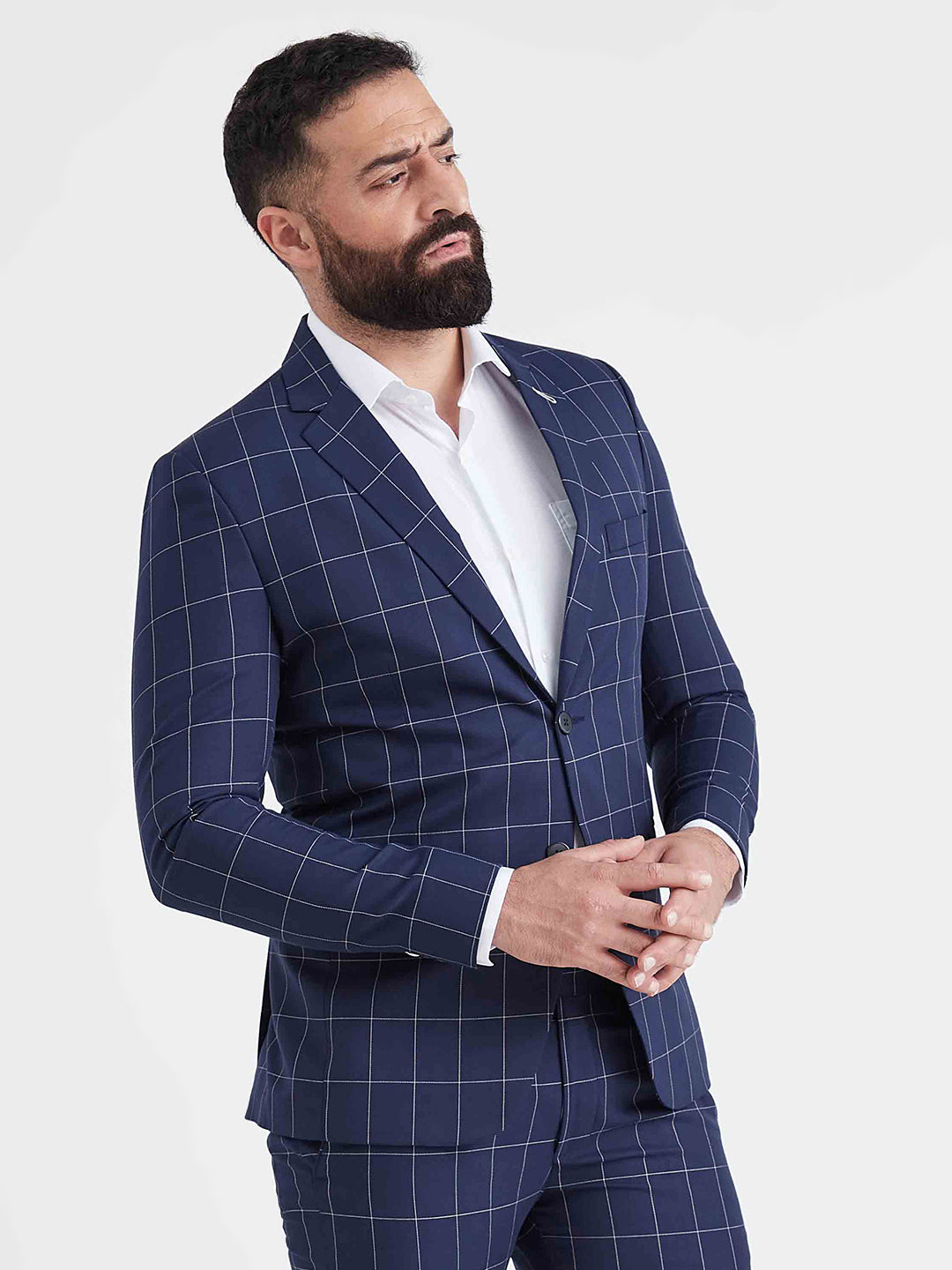 Single-breasted design with snug shoulders and a sharp cut keeps you looking polished from boardroom to after-hours.