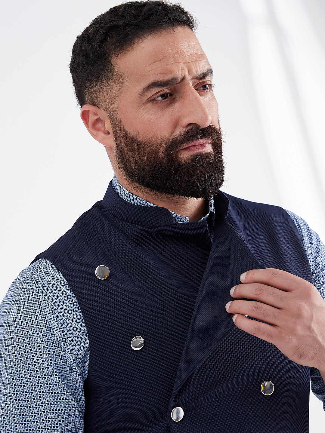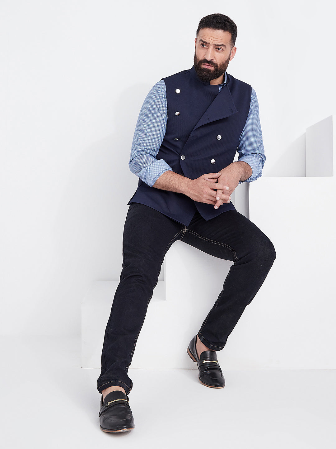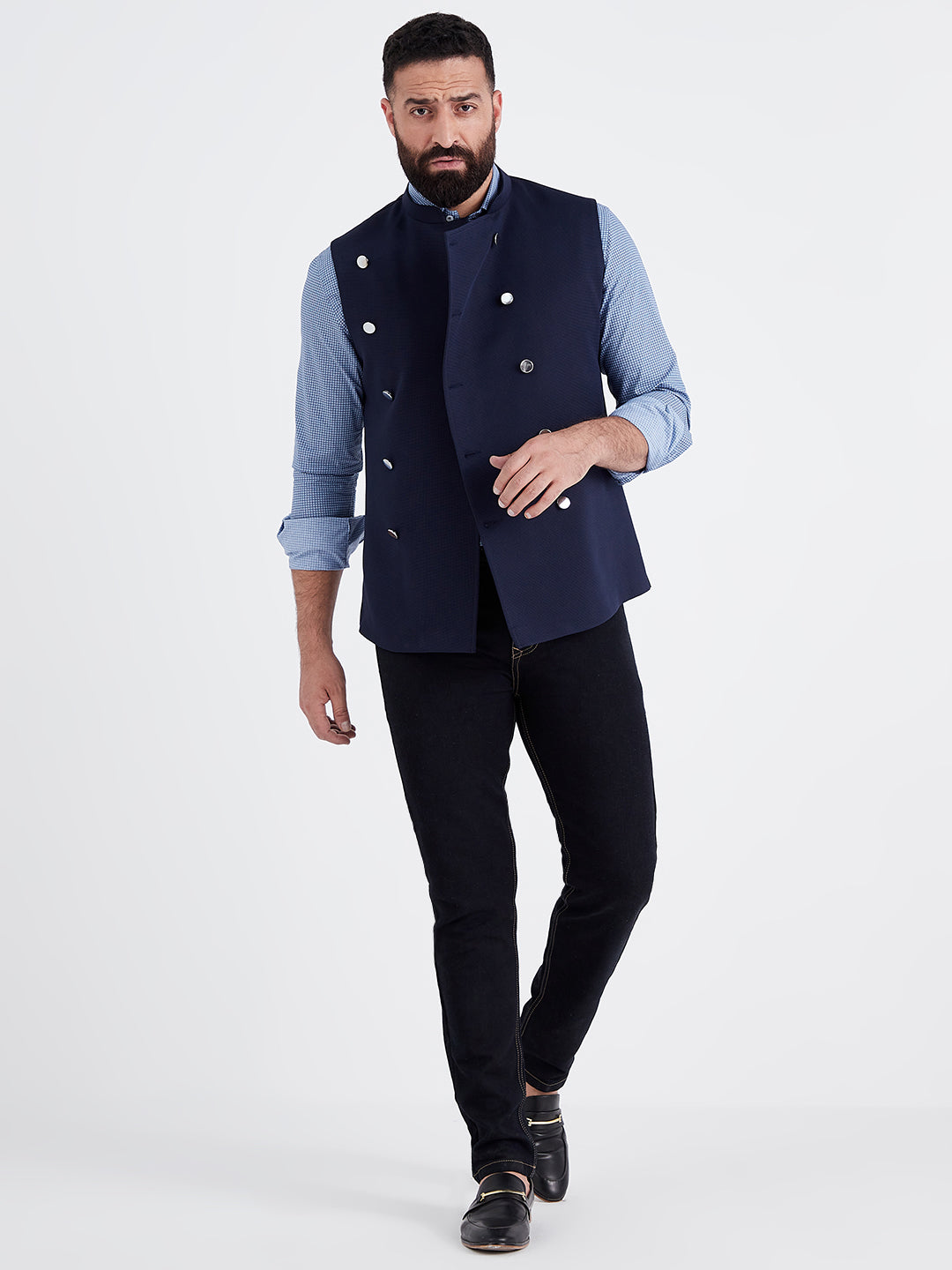 Nehru jackets are the new blazers. These sleeveless jackets are the ultimate all weather layering option to keep your casual style in place. The sharp fit will ensure a crisp consequence each time. Don't hesitate to pair this pair with t-shirts, tunics or shirts.