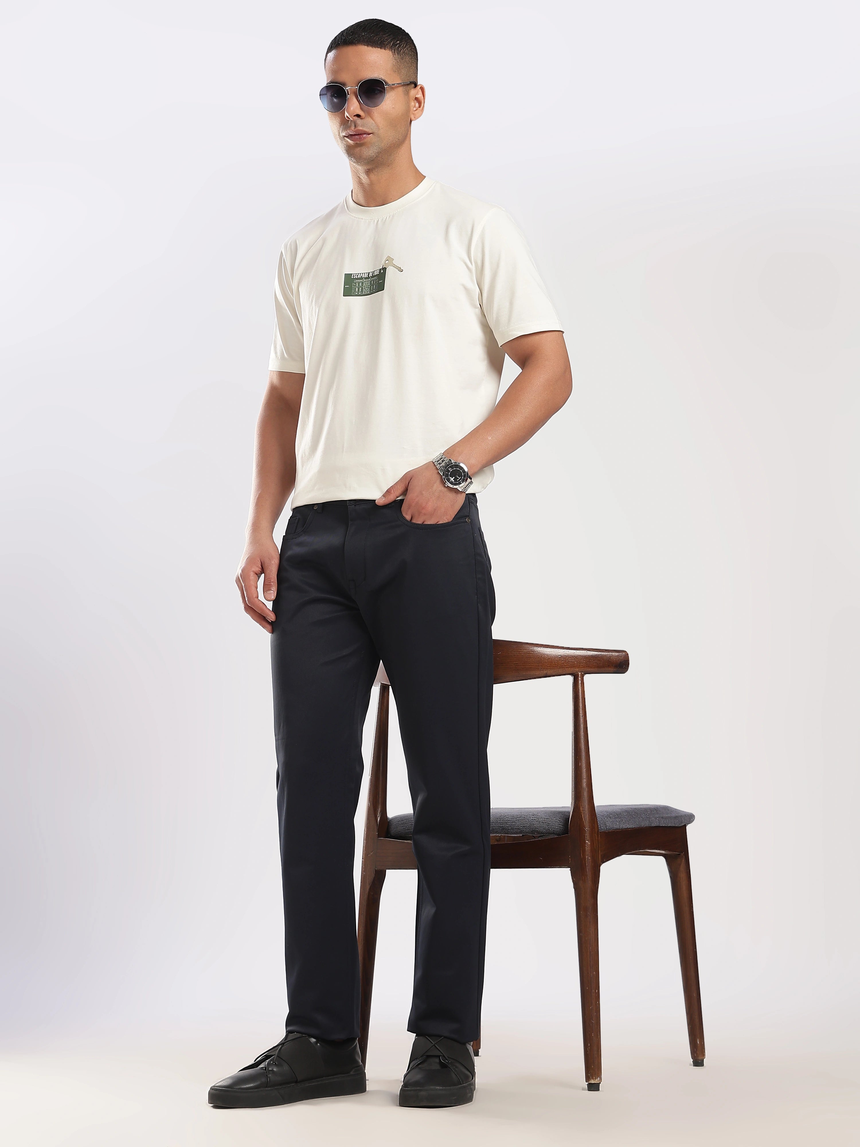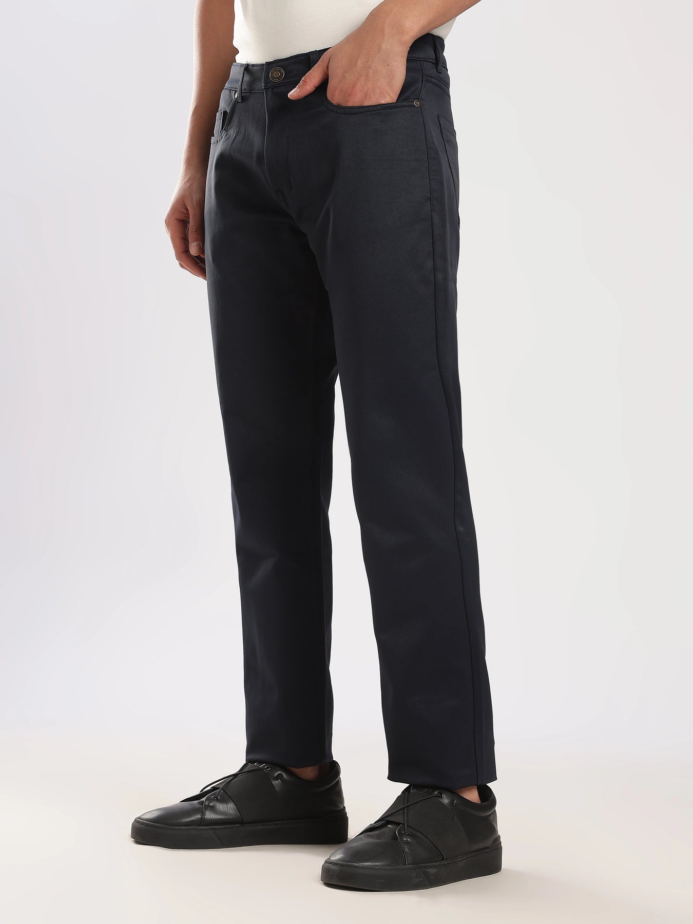 A timeless essential, our Navy Cotton Regular Fit Trouser is designed for everyday versatility and all-day comfort. With a clean silhouette and breathable fabric, it’s perfect for both casual and smart-casual styling.