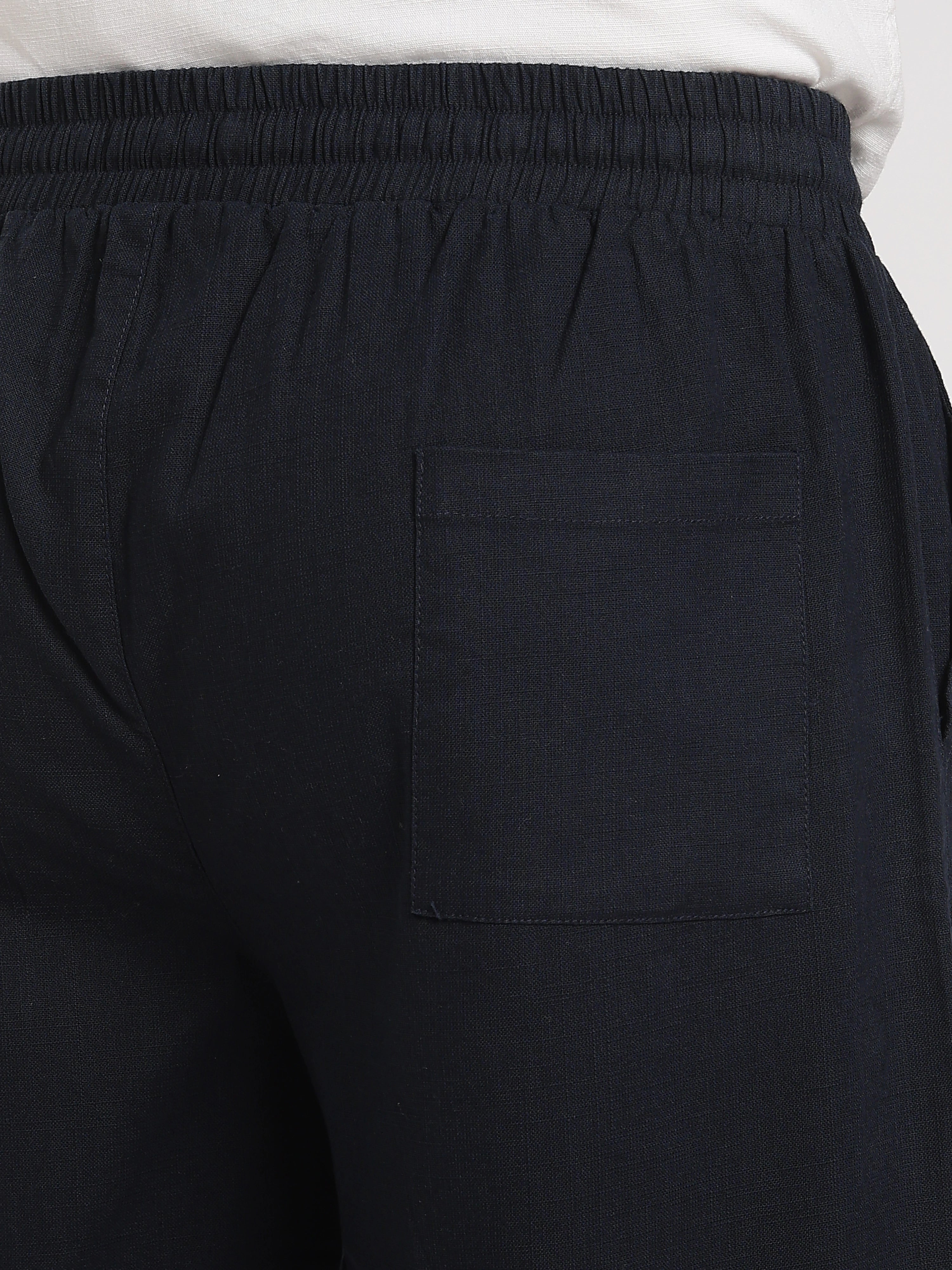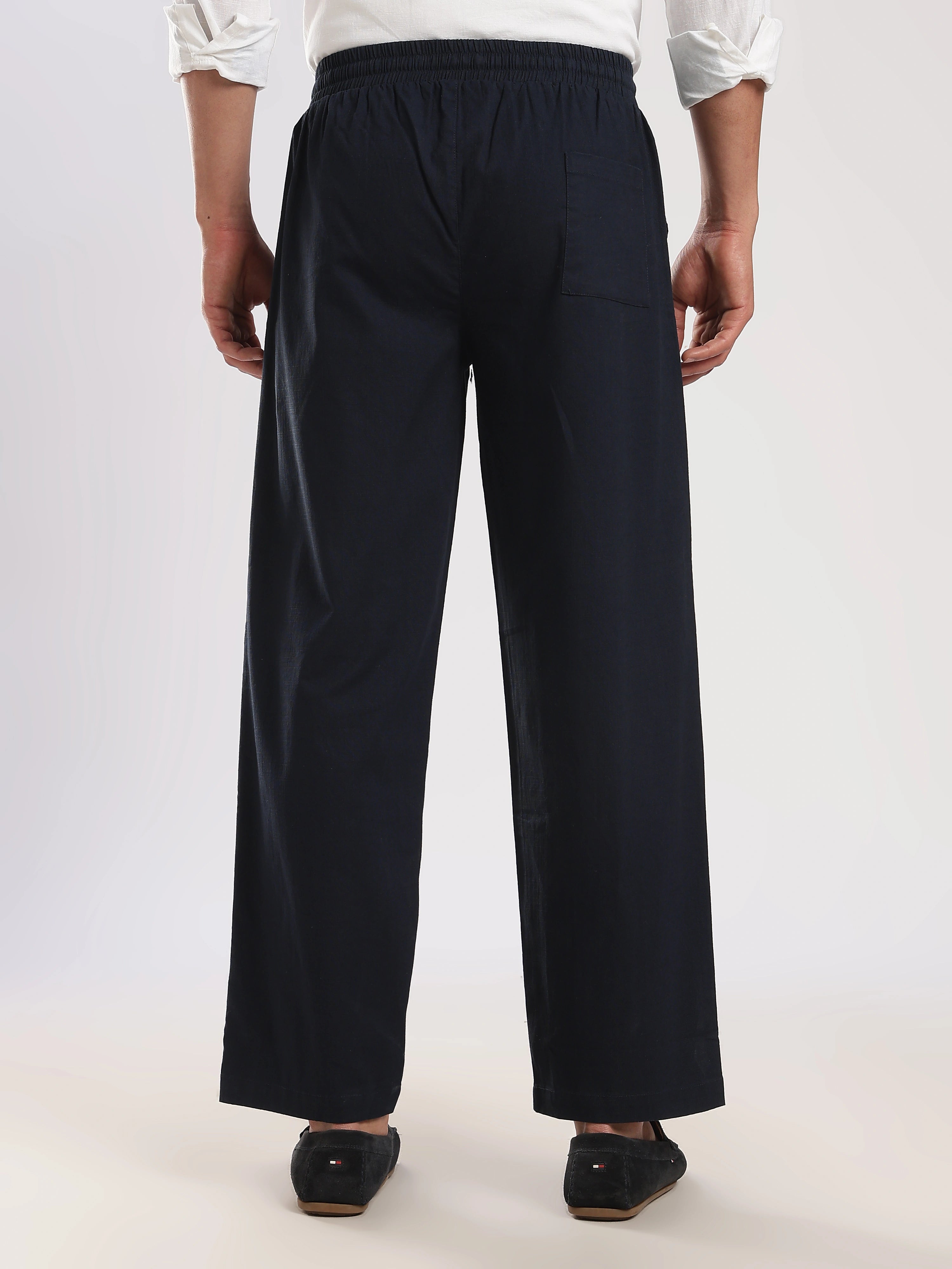 Fit: Regular Fit balanced structure with all-day comfort Color: NAVY- a modern, earthy tone for versatile styling Fabric: Poly-Linen Blend lightweight, breathable & wrinkle-resistant Waist: Mid-rise with a comfortable fit Closure: Button closure with zip fly Pockets: Functional side and back pockets for daily essentials Occasion: Ideal for casual outings, travel, and semi-formal wear Model Info: Model is wearing size 34