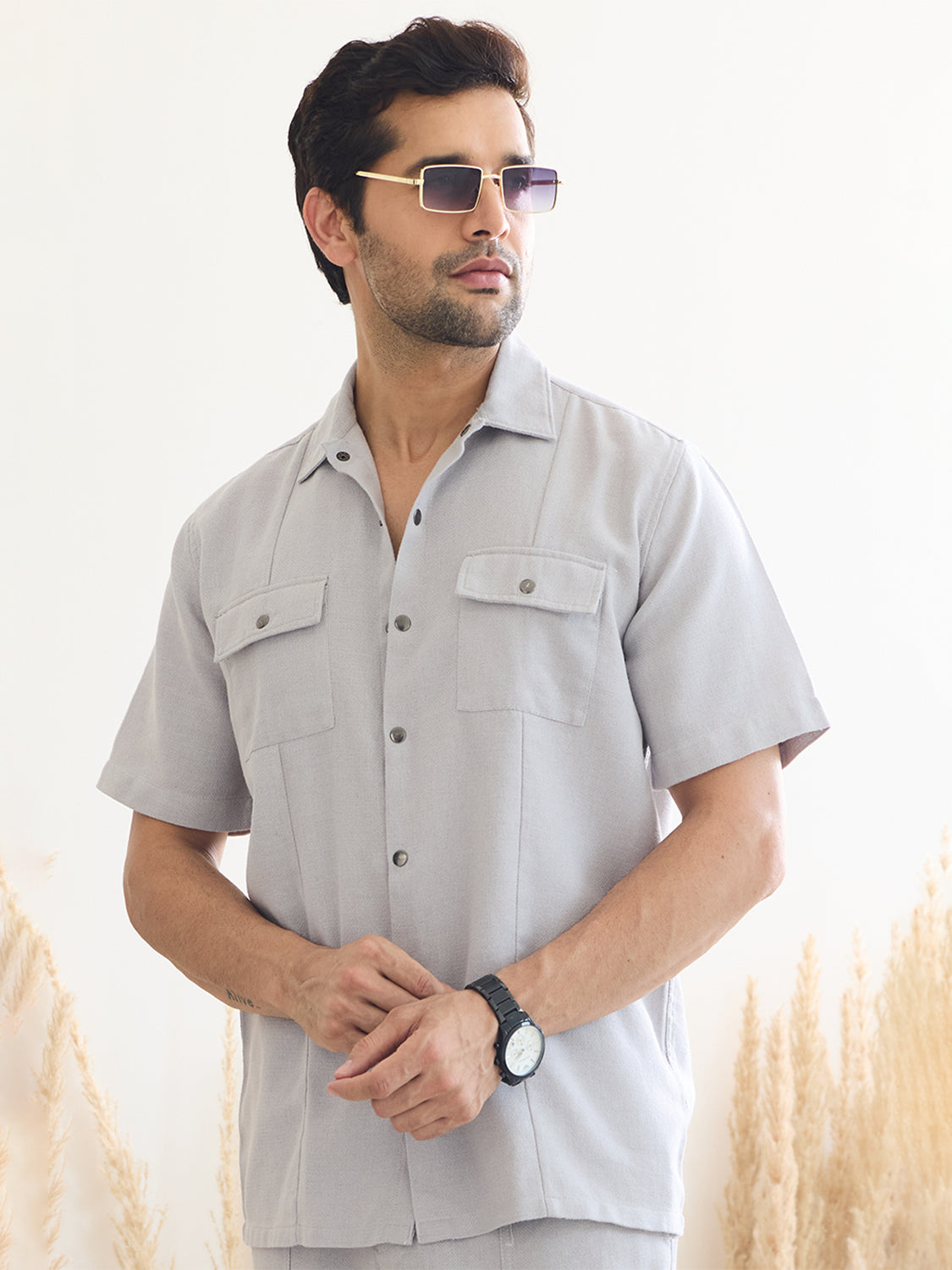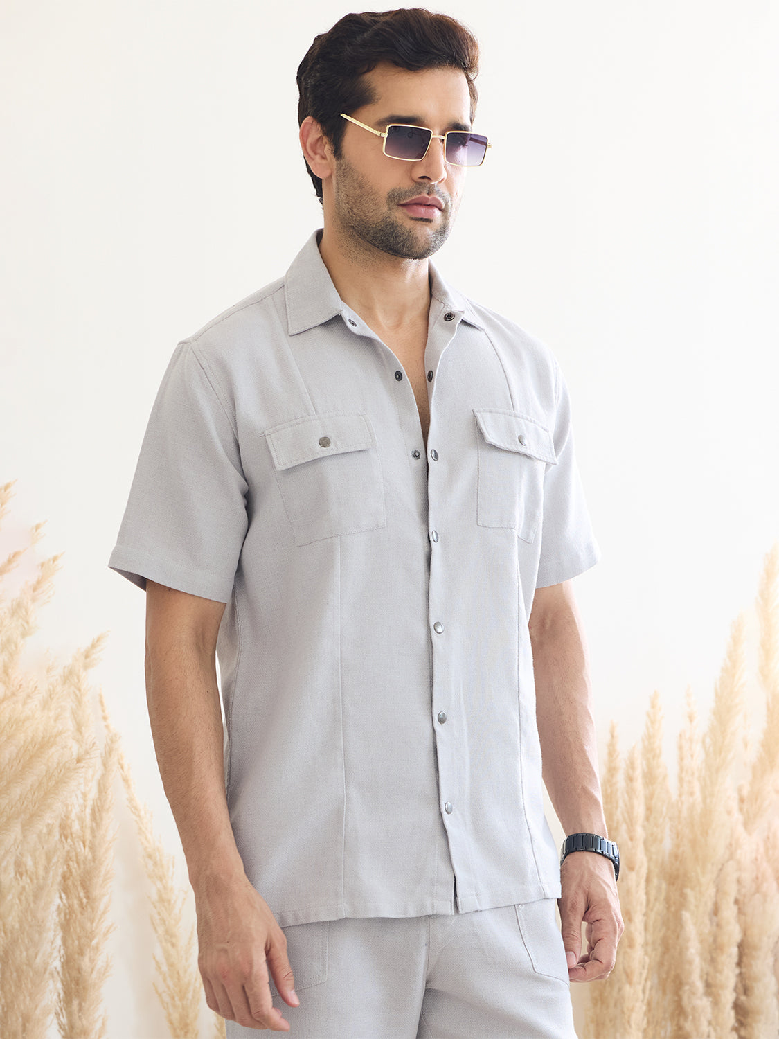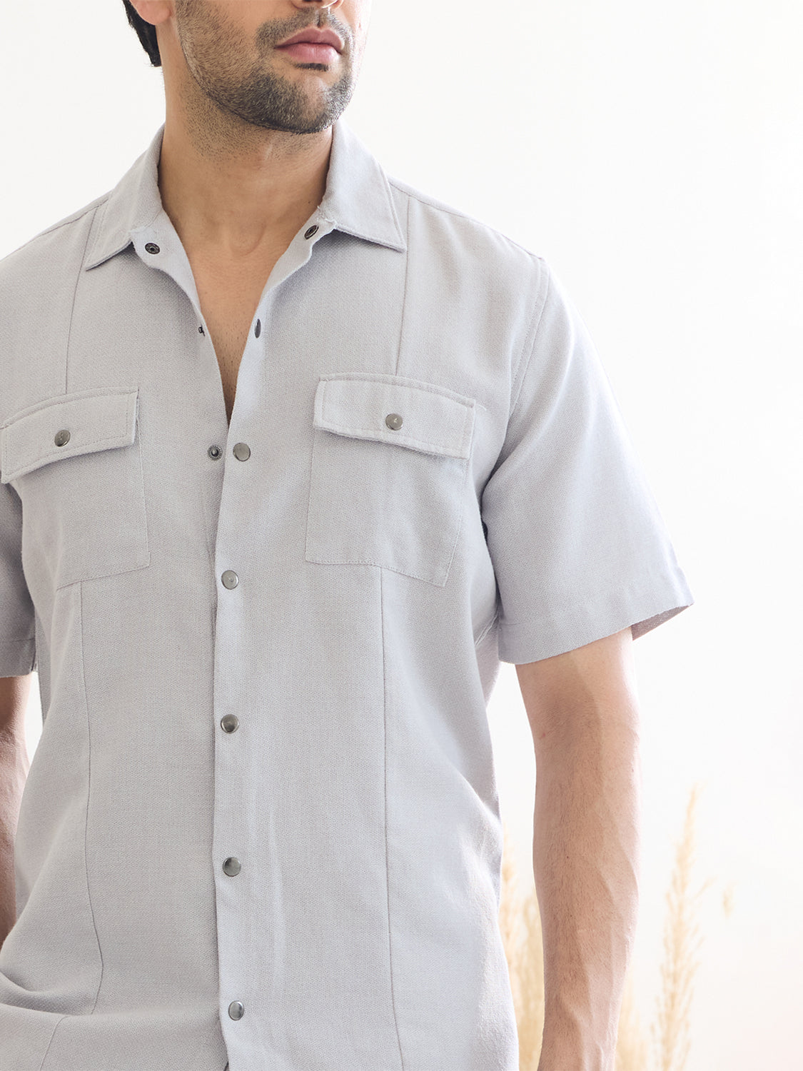 Discover effortless style with our "Out West Shirt" in a sophisticated grey. This solid shirt features a classic spread collar and intricate pocket detailing, adding a touch of uniqueness to your smart casual wardrobe. Crafted from premium mélange cotton fabric, it offers a relaxed fit for all-day comfort and a textured finish for visual interest. Perfect for any occasion, from office meetings to weekend outings, the "Out West Shirt" is your go-to choice for a blend of elegance and ease.