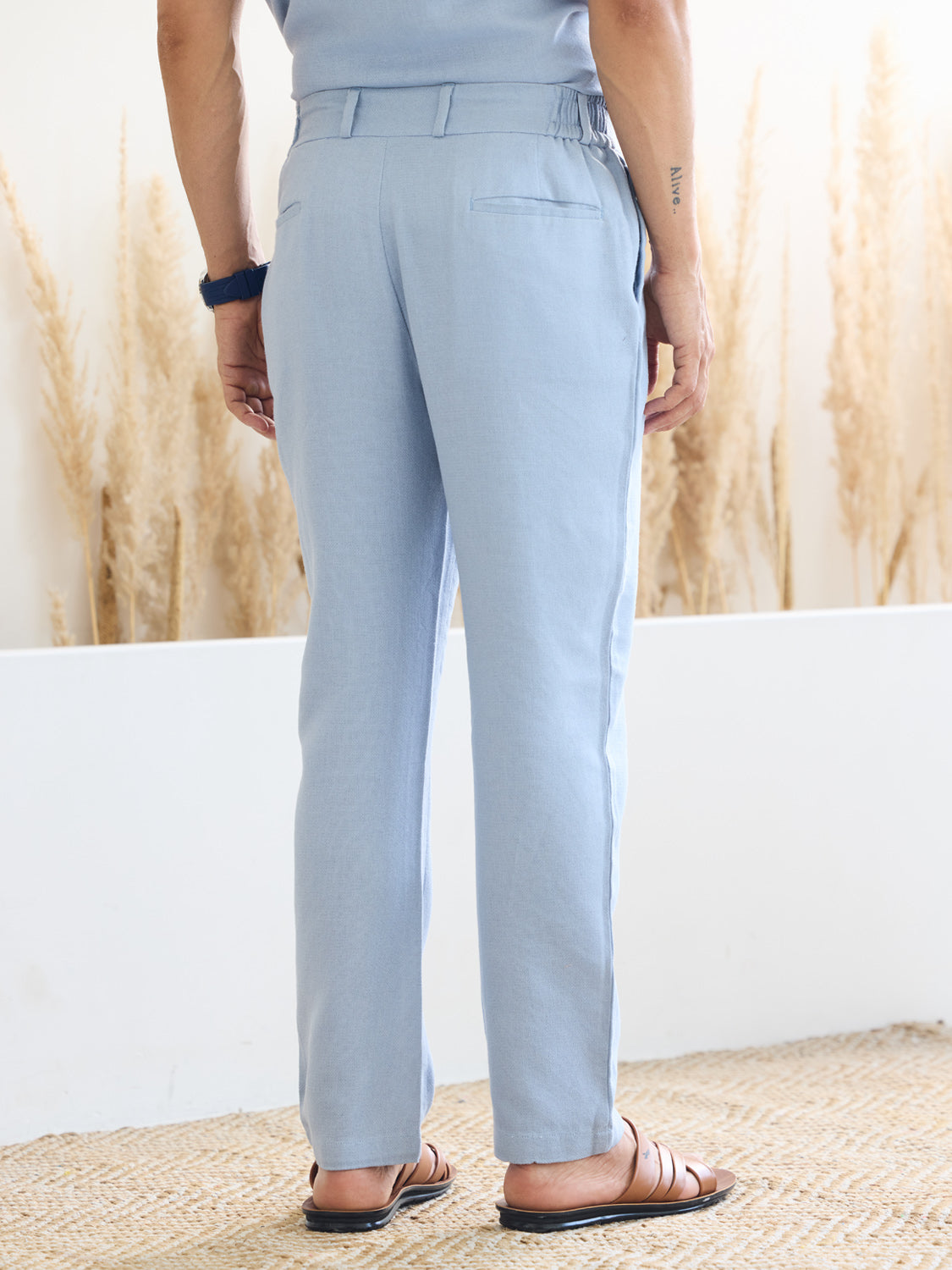 Catchy Customer Line: "Dive into Style: Sail Through Smart Casual Occasions with the Pontoon Trouser!" Elevate your wardrobe with our "Pontoon Trouser" in a timeless blue hue, perfect for smart casual occasions. Featuring a relaxed fit and stylish slash pocket detailing, these trousers offer both comfort and sophistication. Make a bold statement and stand out from the crowd with the "Pontoon Trouser," where style meets versatility seamlessly.
