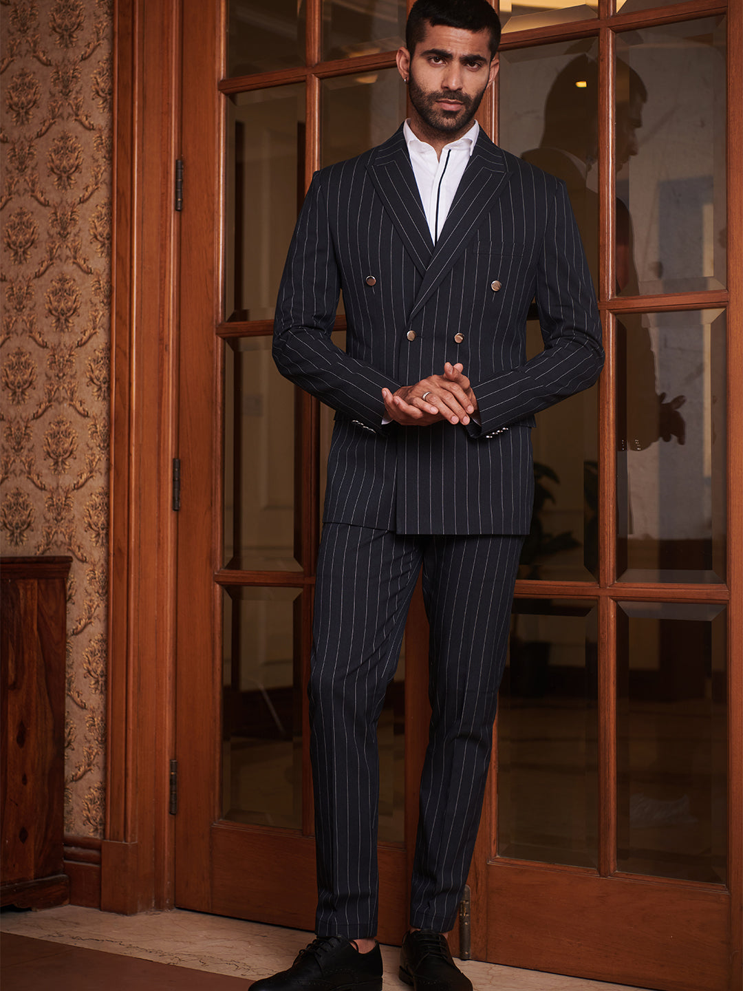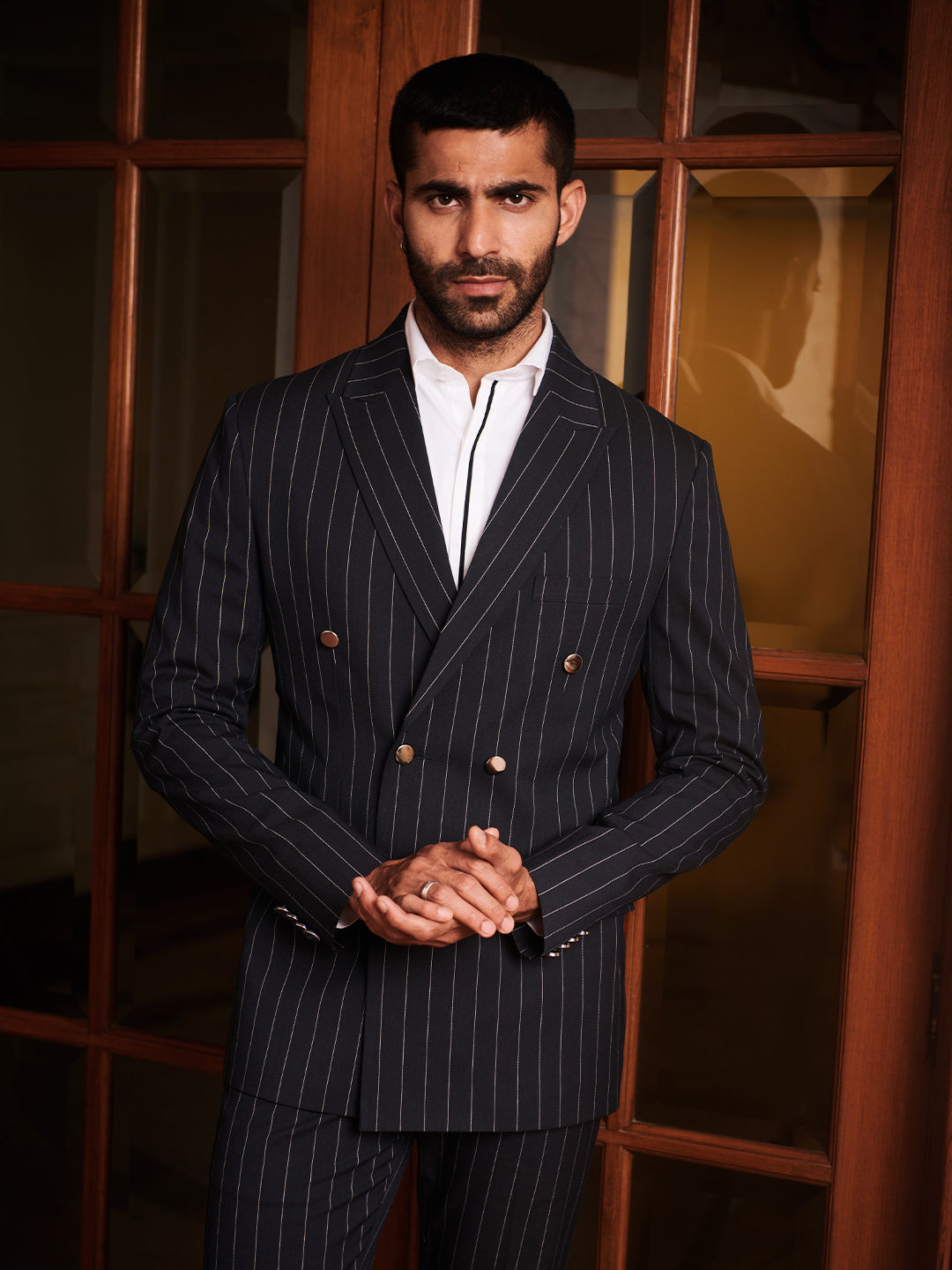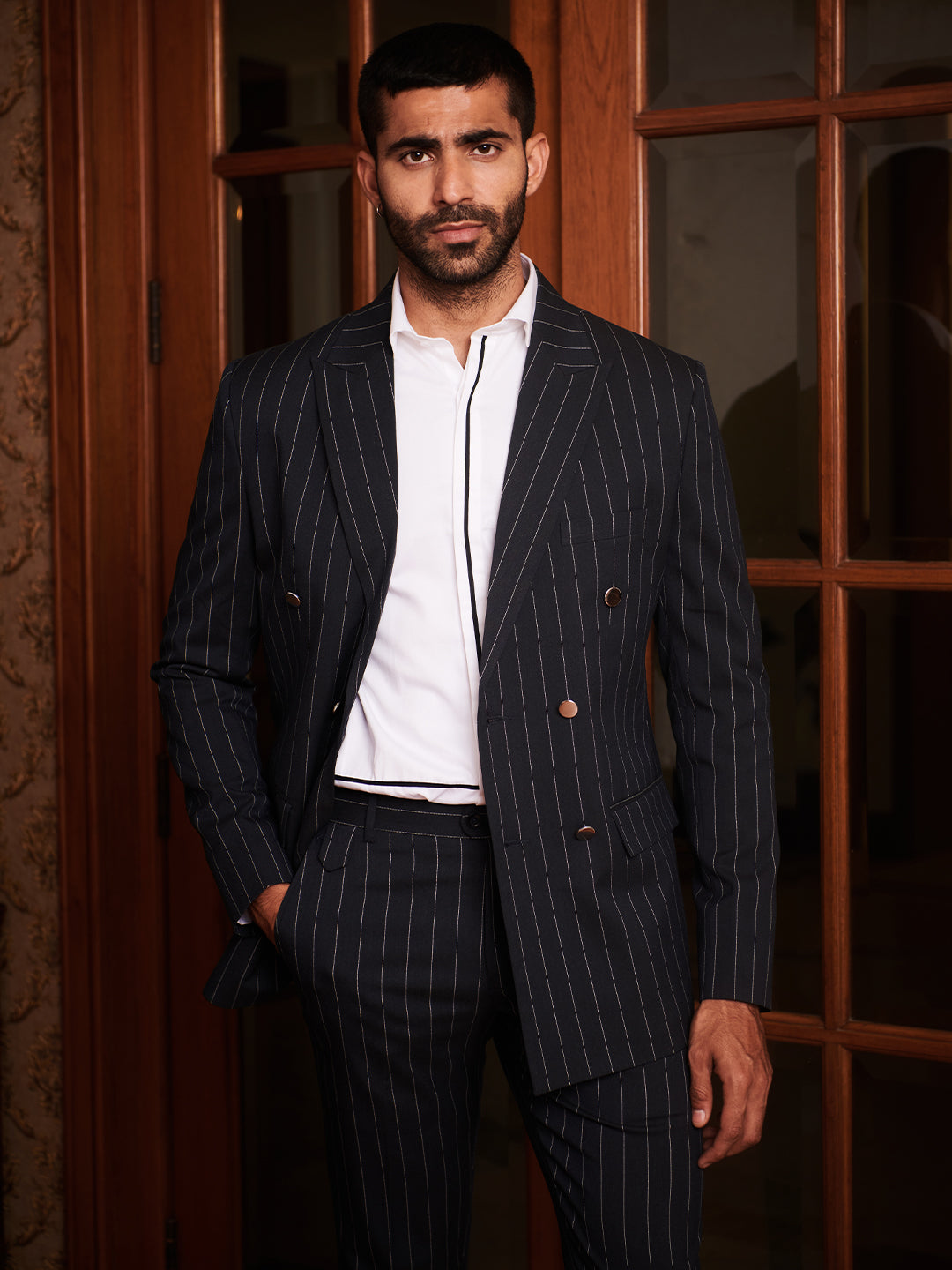 Elevate your style with the Young & Hungry Blazer—a timeless double-breasted men's blazer crafted in poly viscose for a sharp, tailored look that works from boardroom to weekend.